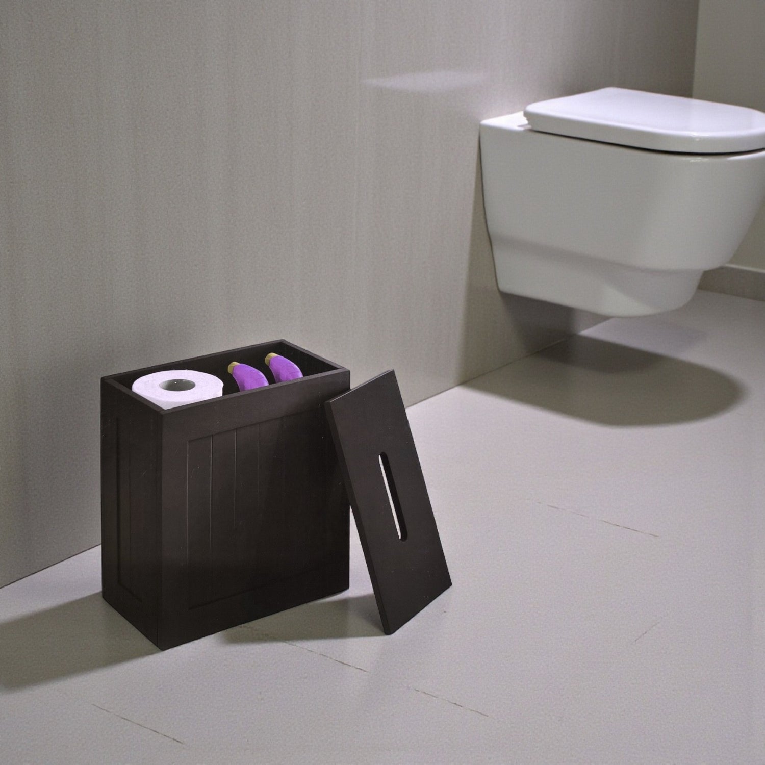 Wooden Toilet Cleaning Storage Black Tidy Box Unit