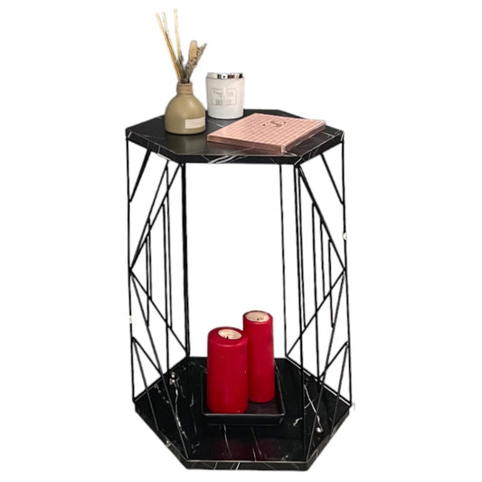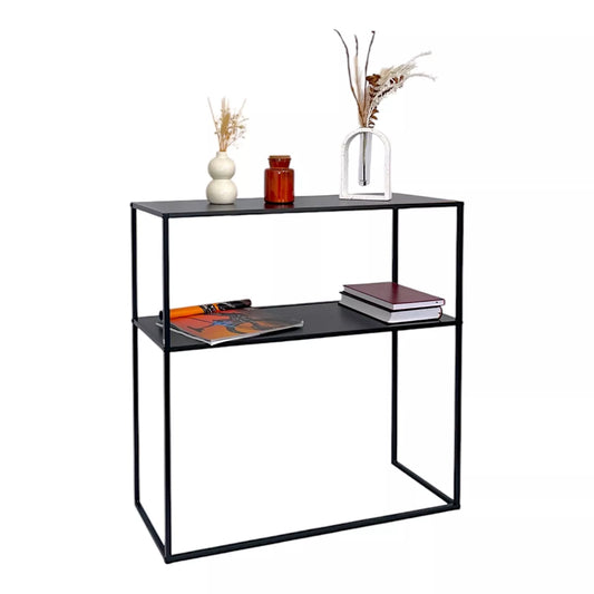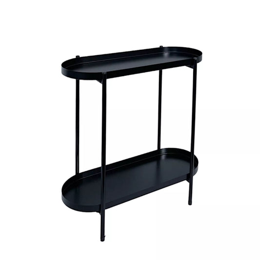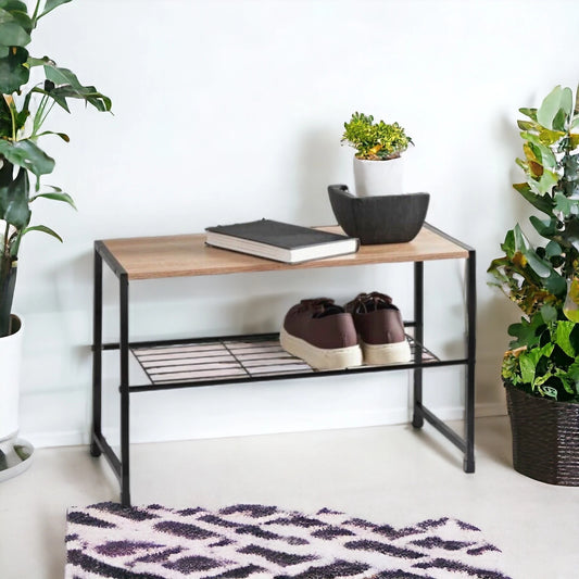2 Tier Shelf Oak Effects with Black Metal Frame