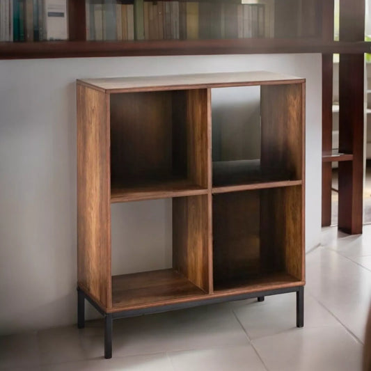 2 Door 4 Tier Shelves Tall Bookcase Ladder