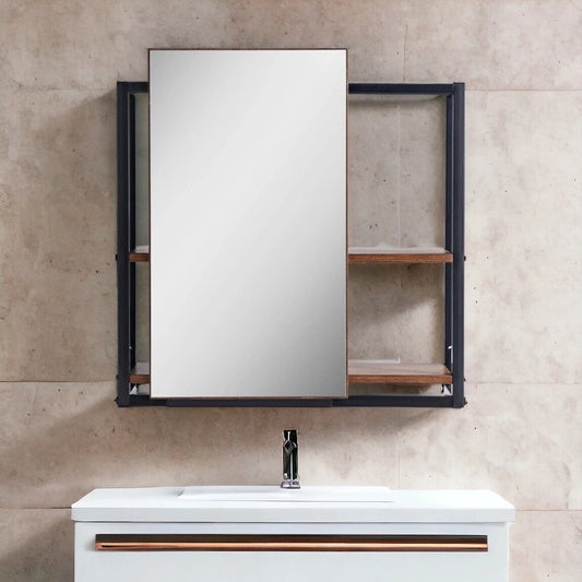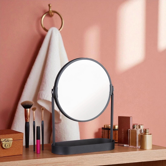 Black Round Bathroom Mirror With Cosmetics Shelf