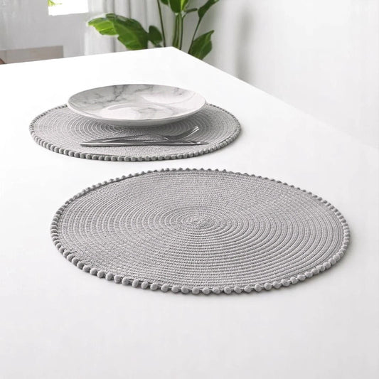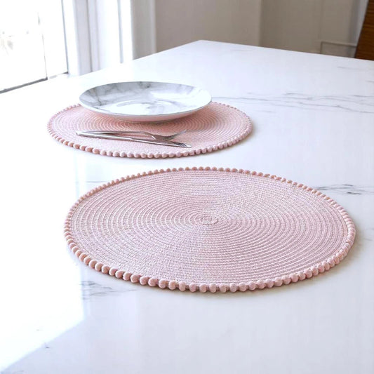 Pink Round Pom Pom Placemats set of 4 Table Mats