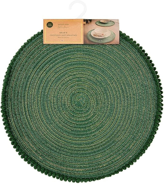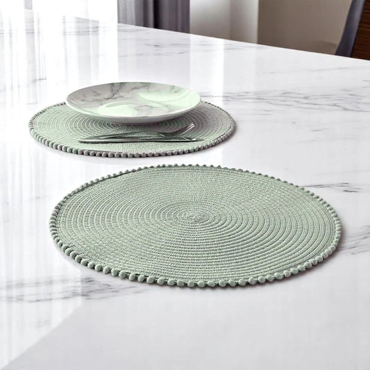 Green Round Pom Pom Placemats set of 4 Table Mats