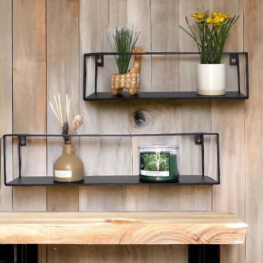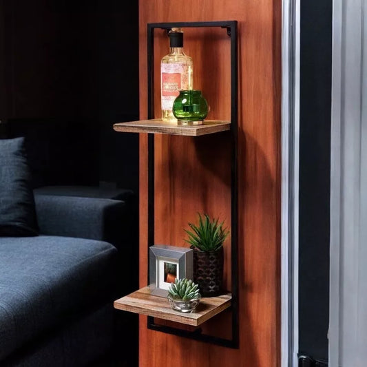 2 Tier Shelf Oak Effects with Black Metal Frame