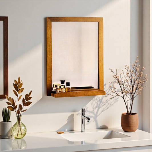 Wooden Bathroom Mirror with Shelf Wall Mounted Mirror