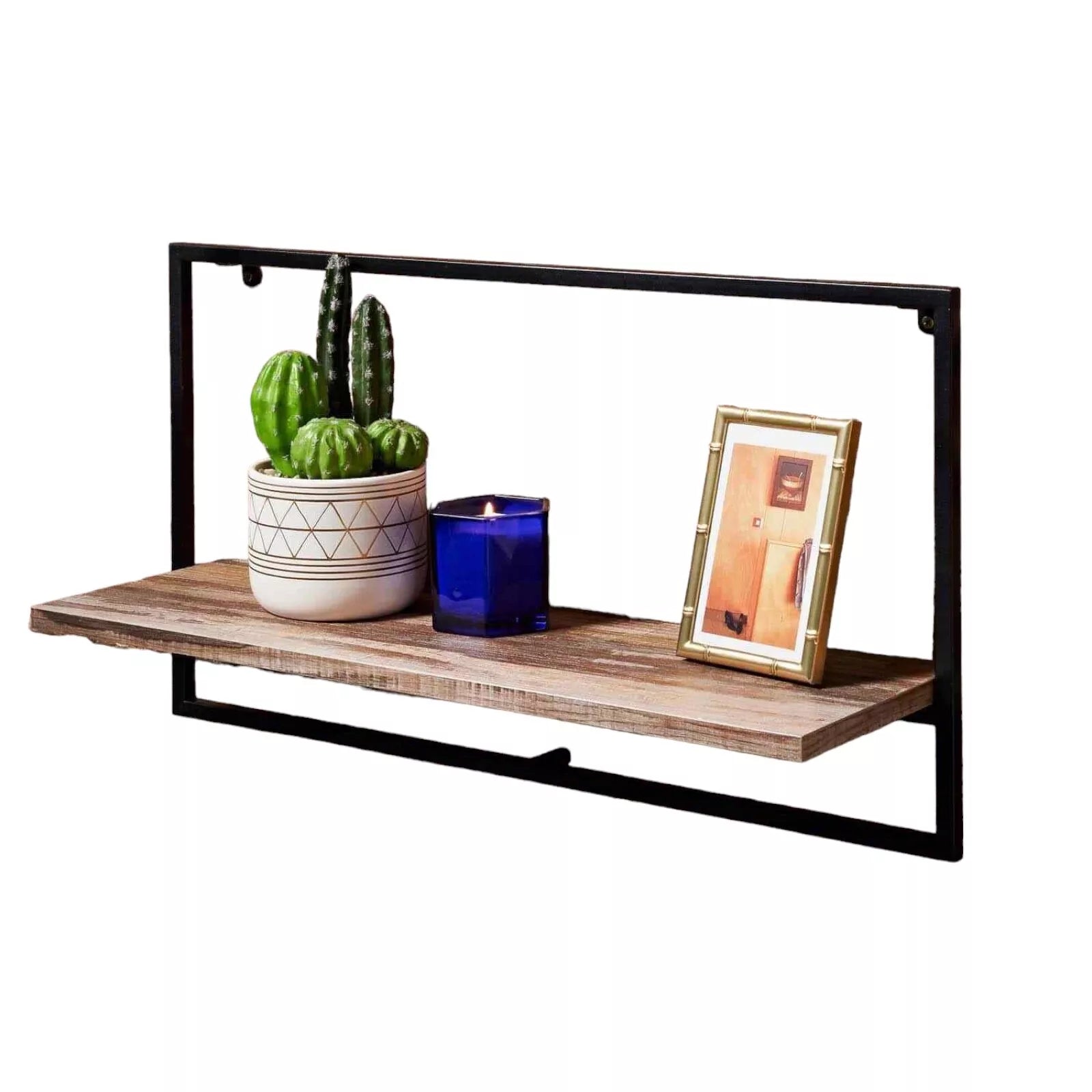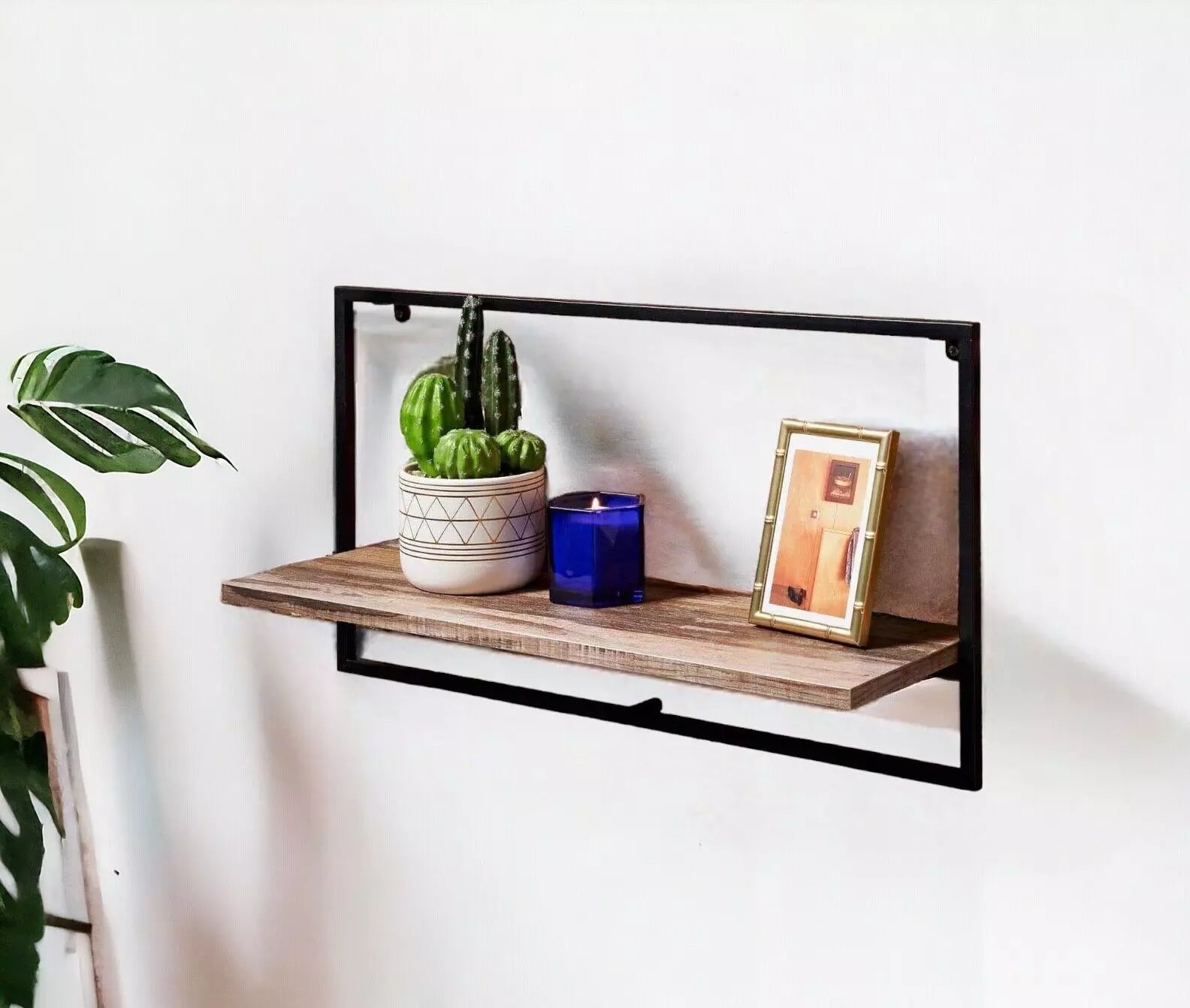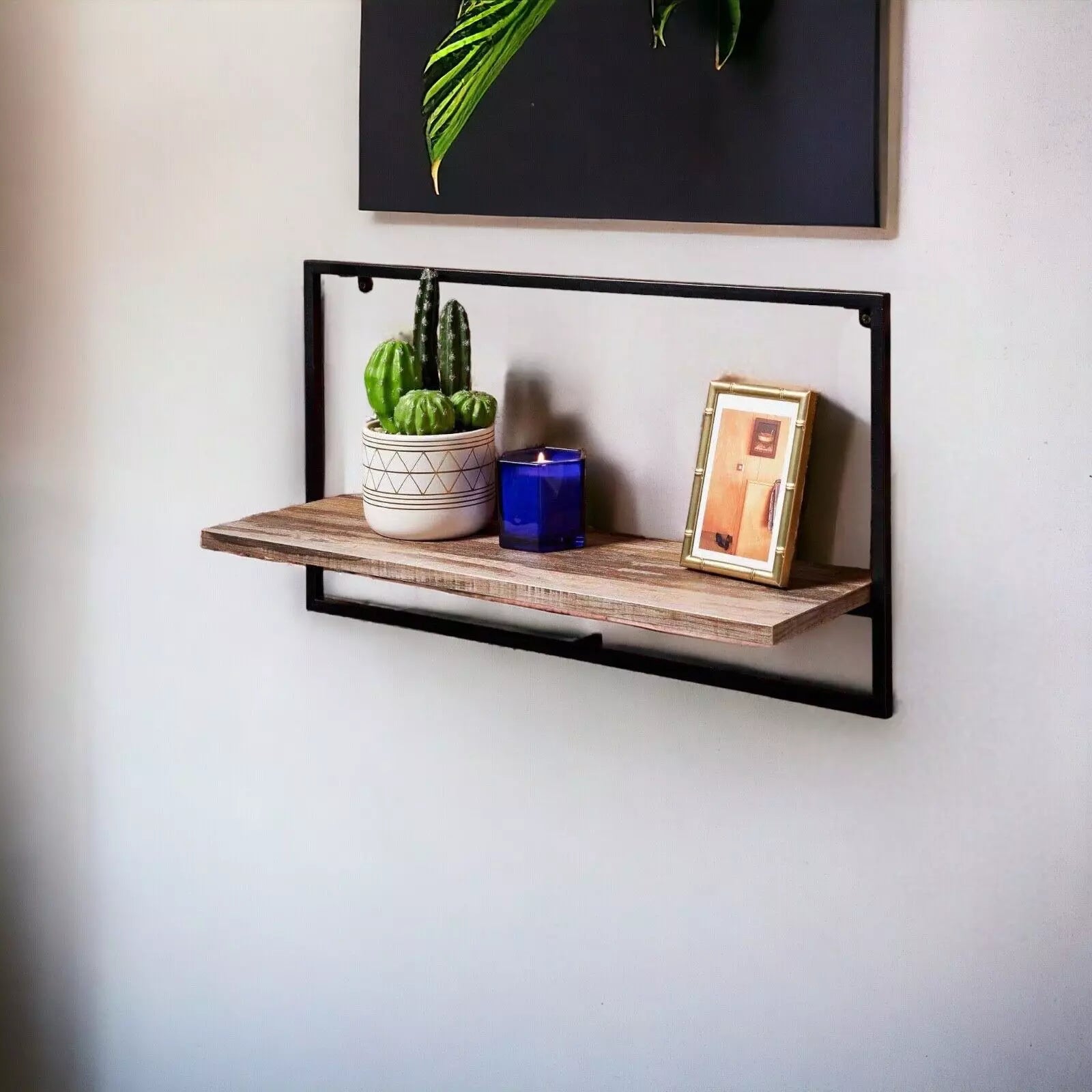Tromso Wide Shelf Black Metal Frame With Wooden Shelf Floating Wall Home Decor