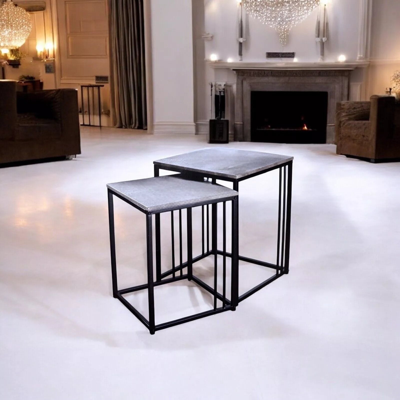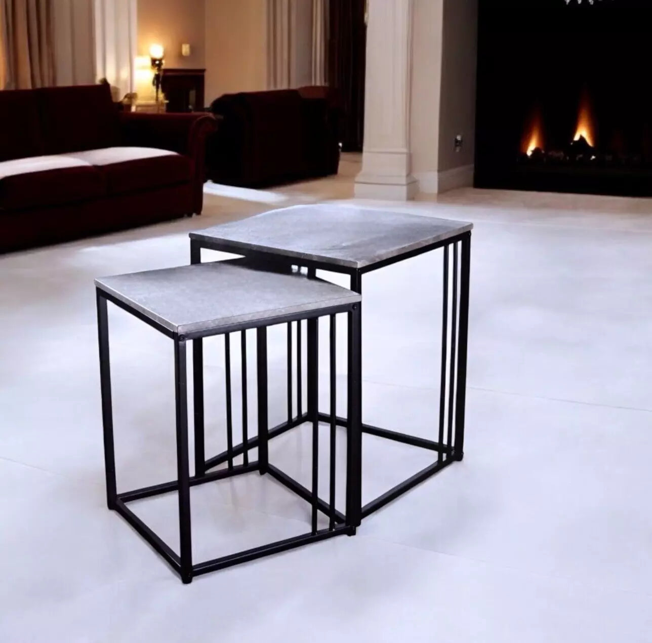 Bring contemporary style and everyday practicality to your home with the Chicago Set of 2 Nesting Tables. Featuring a grey marble-effect MDF top and sleek black metal frames, these tables are perfect for entertaining or everyday use.