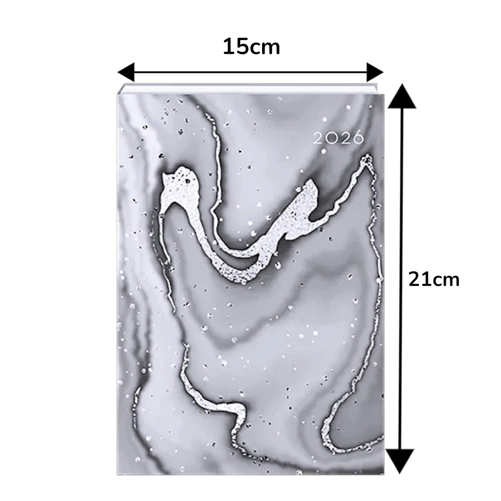 Plan your year in effortless style with this 2026 A5 Week-to-View Diary featuring a White & Grey Marble Design. Sleek, modern, and timeless, this diary is the perfect companion for keeping your days well-organised and your notes beautifully presented.