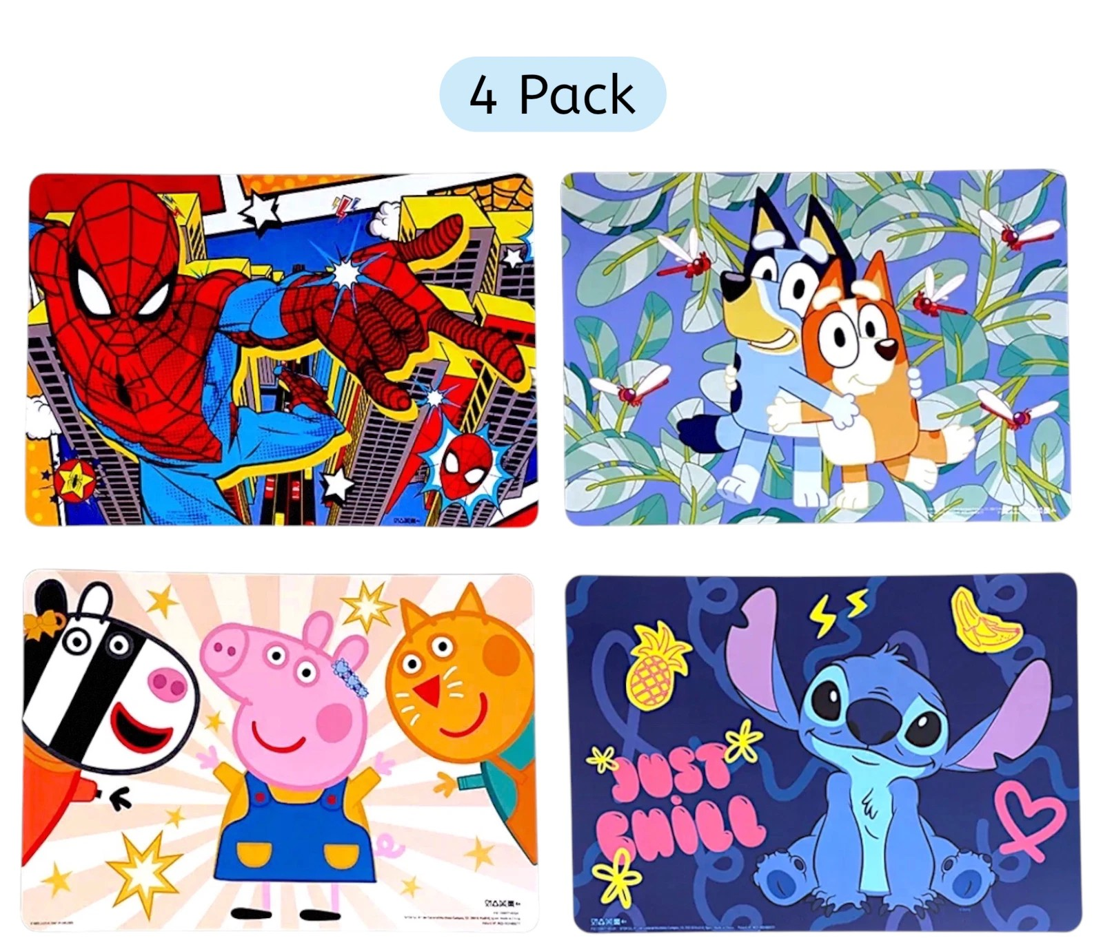 Set contains 4 placemats (one of each design: Peppa Pig, Stitch, Bluey, Spider-Man)