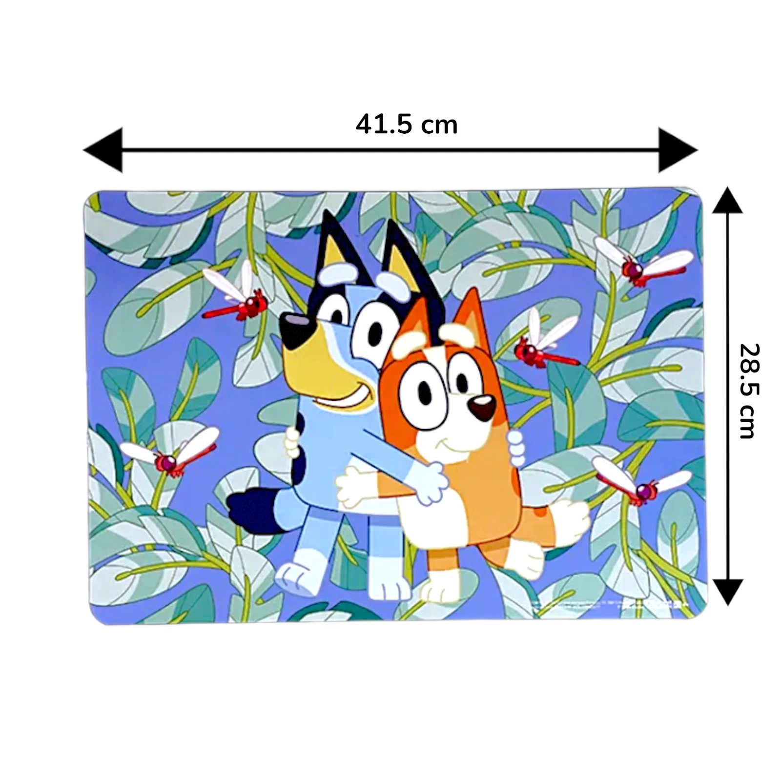 6PC Kids Dinner Tableware Set- Placemat, Plate, Bowl, 460ml Tumbler, Cutlery Set- Bluey
