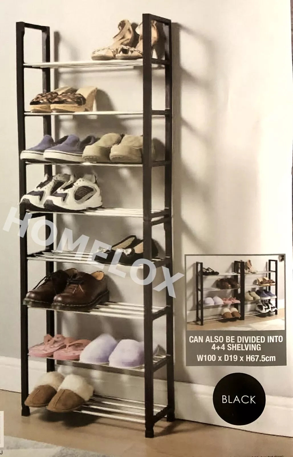 8 Tier Stackable Shoe Rack Cabinet Shelf Organiser Can Be Divided Into 4+4 Black