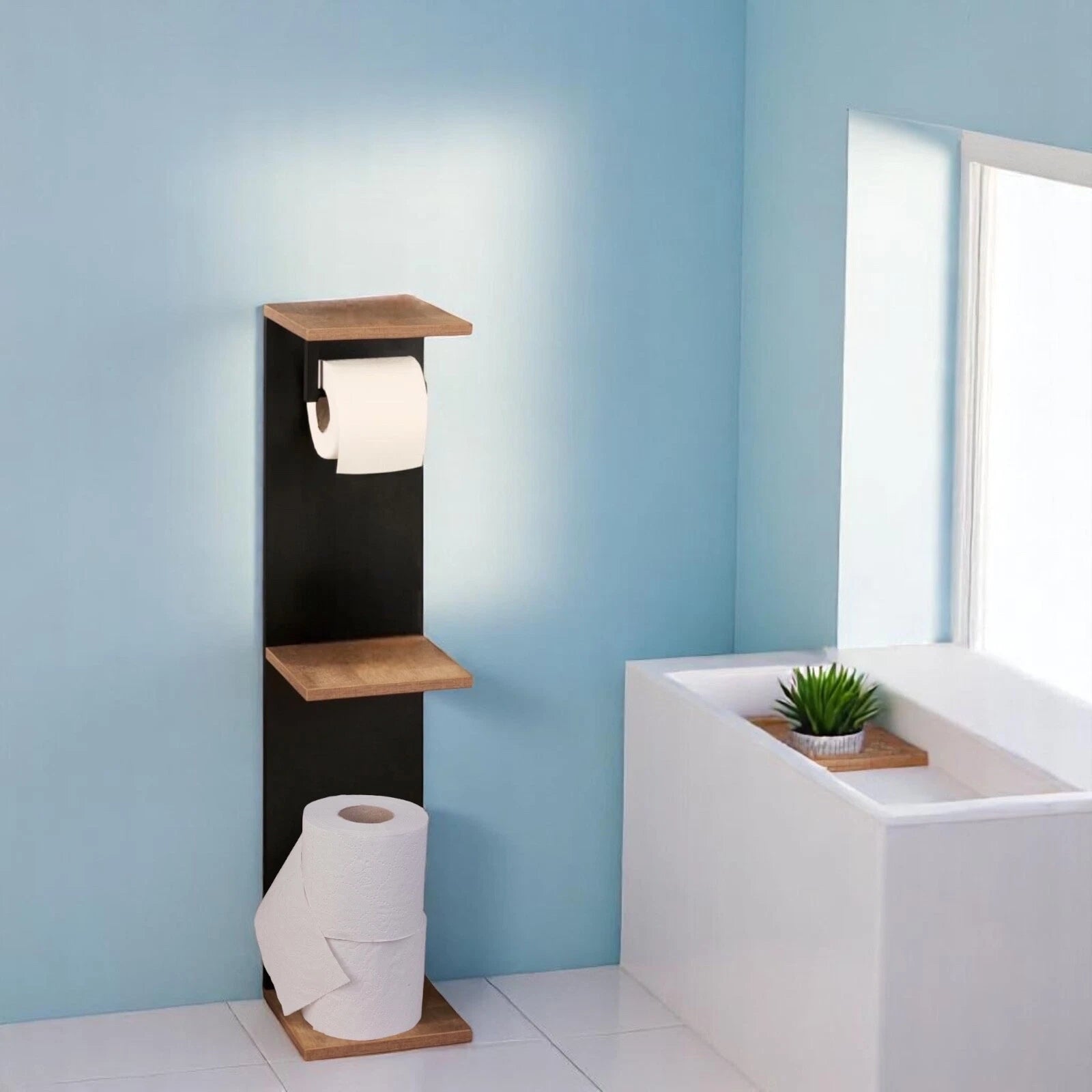 Type: Freestanding bathroom shelf with toilet paper holder