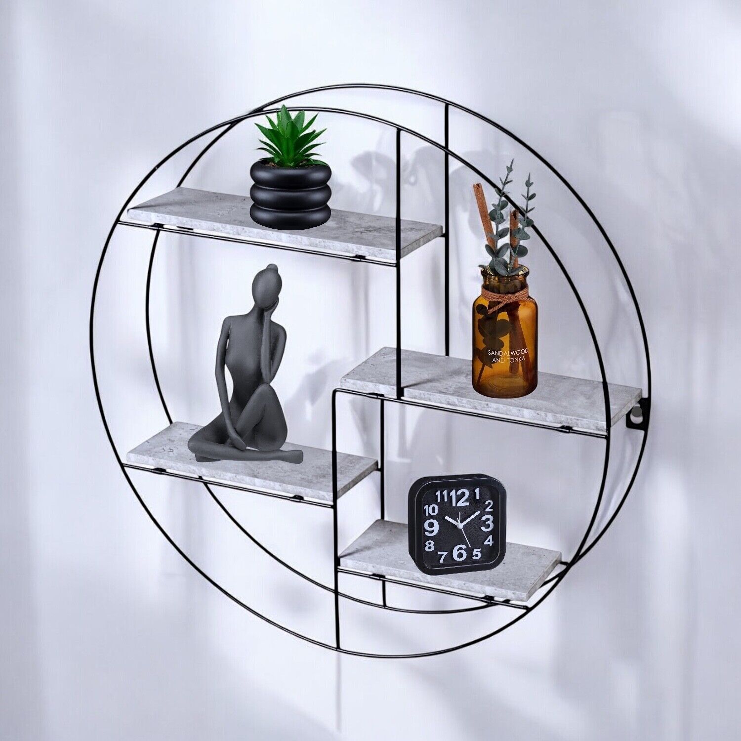 Metal Wire Wall Shelf Home Décor Black Floating Round Multi-Section Grey Shelves