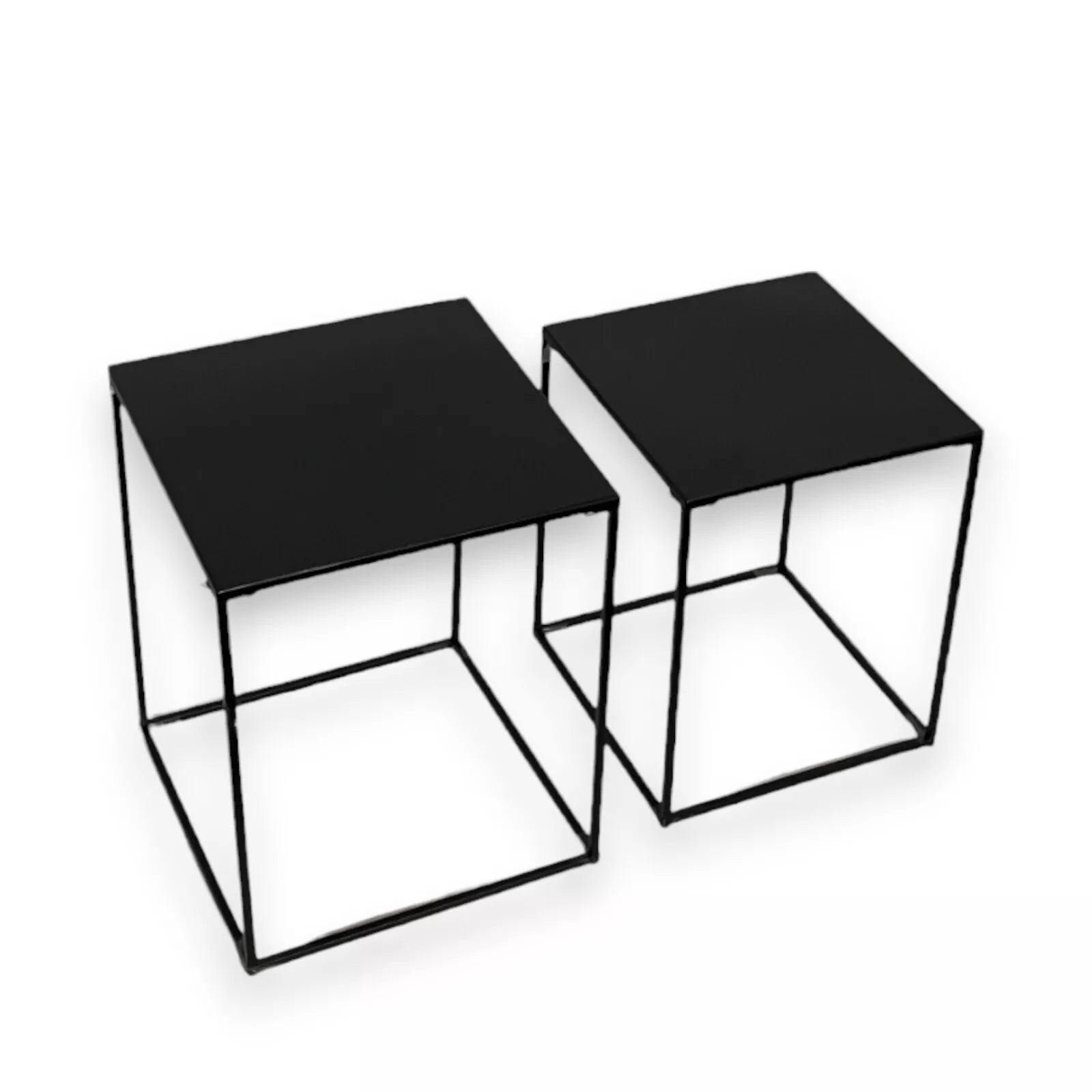 Black Metal Table Set of 2 Coffee Nest Tables Side End Table Balcony Tables