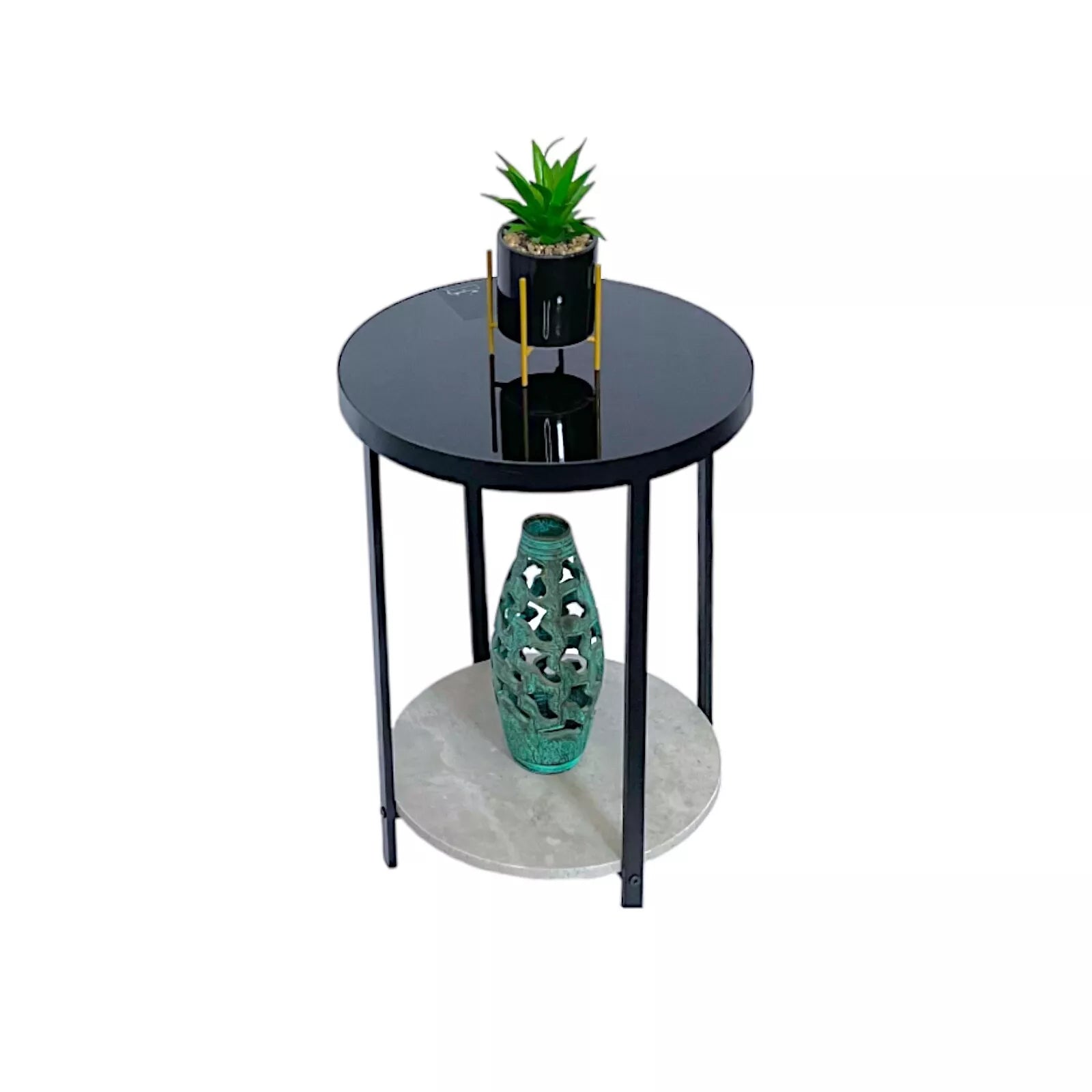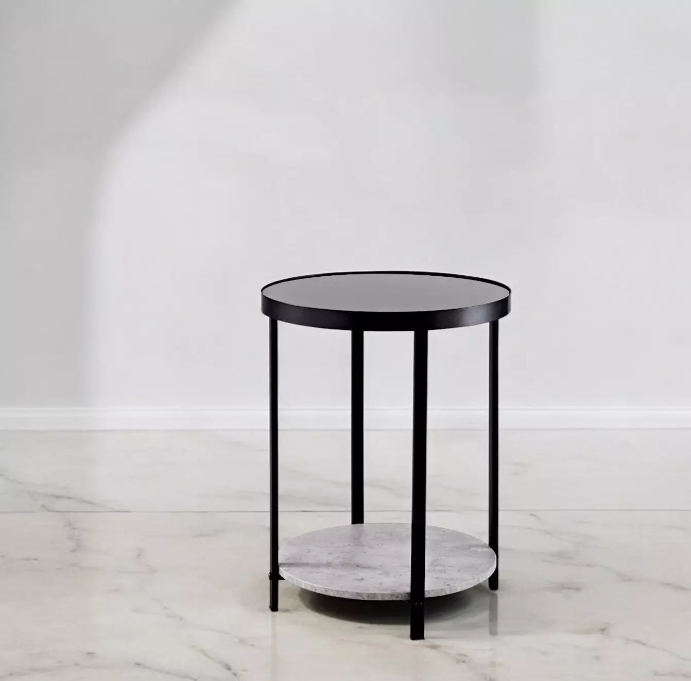 Enhance your living room with the sleek and stylish *Premium Side Table*. Featuring a dark mirrored glass top paired with a black frame and a convenient bottom shelf, this table combines modern elegance with practical storage. Ideal as a side, end, or coffee table, it complements contemporary décor while providing a functional surface for drinks, books, or decorative items.