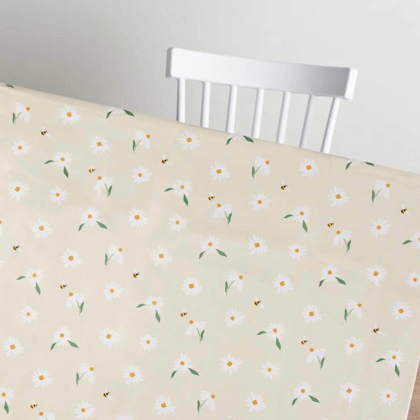 Bee & Daisy Printed Tablecloth – Wipe Clean PVC Dining Table Cover (132 x 178cm)