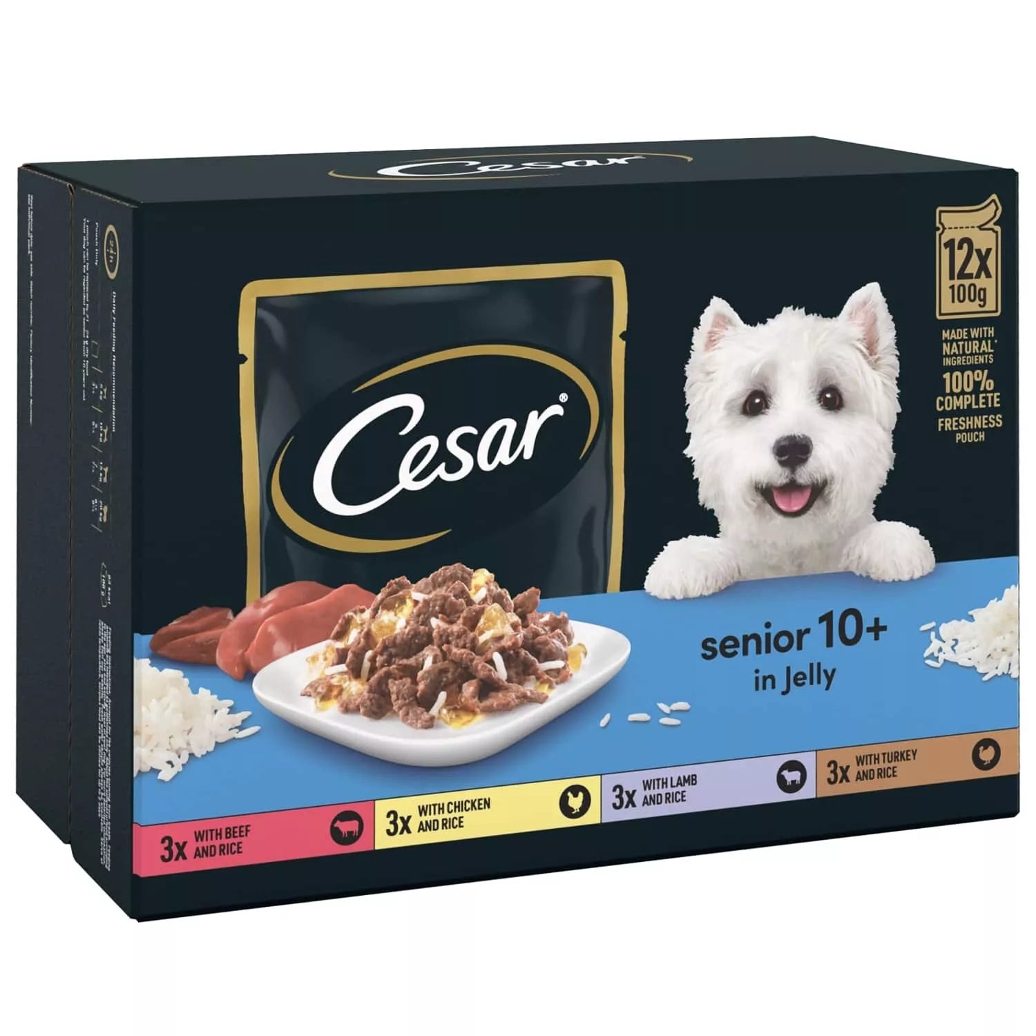 Cesar Senior 10+ Deliciously Fresh Wet Dog Food Pouches in Jelly 12 x 100g Mixed