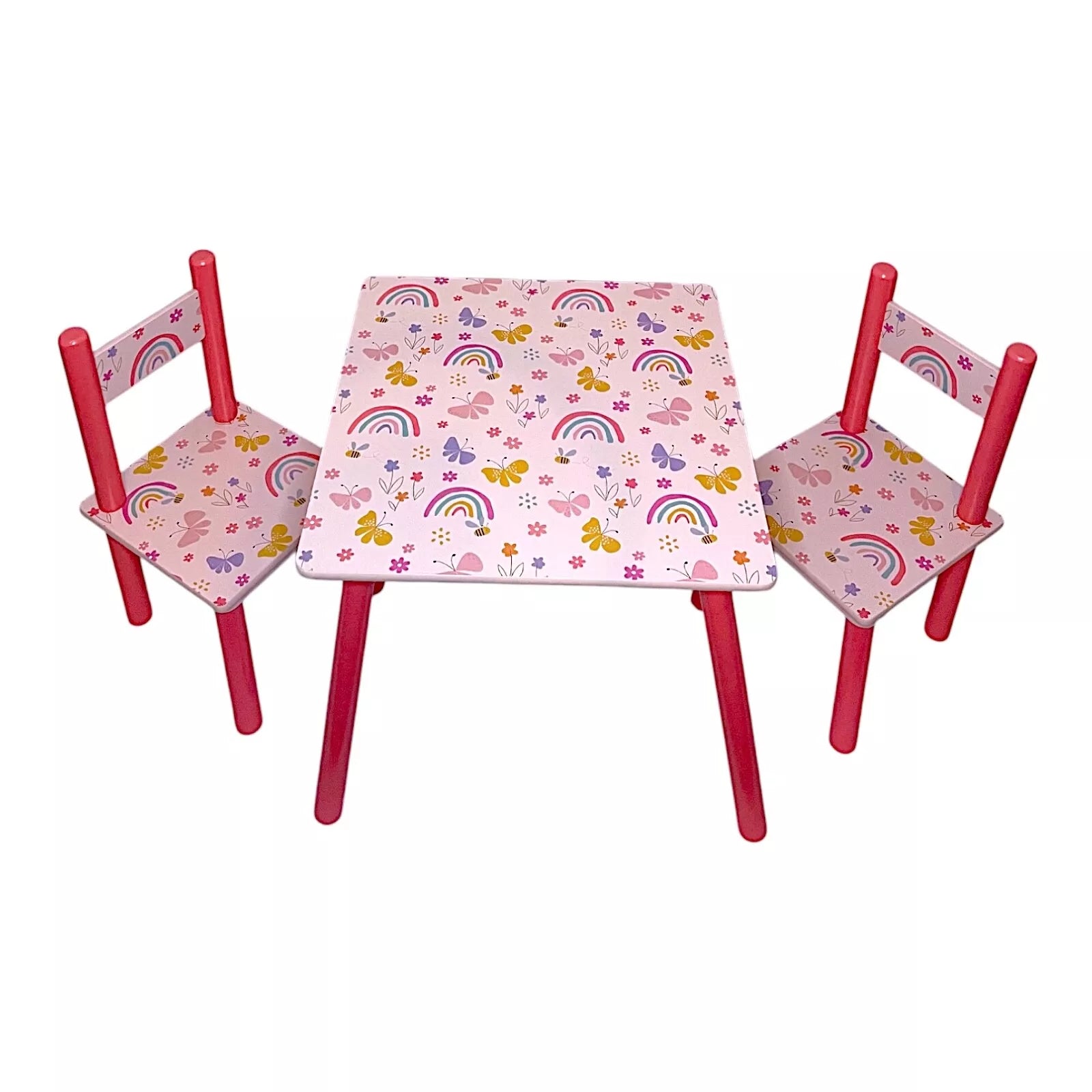Children Kids Table and 2 Chairs Set Activity Furniture Playroom Table -Rainbow