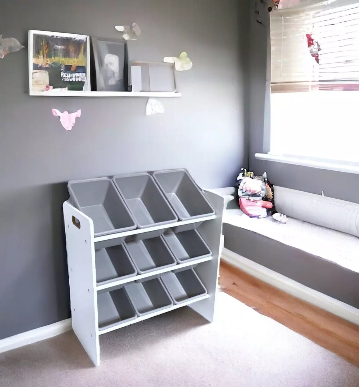 Children's Toy Storage Unit with 9 Removable Plastic Bins Kids Shelves Organiser