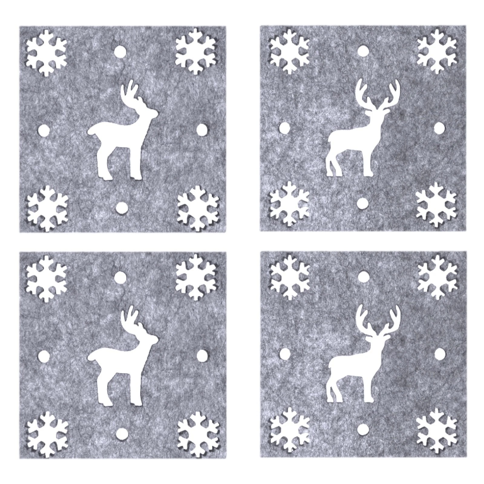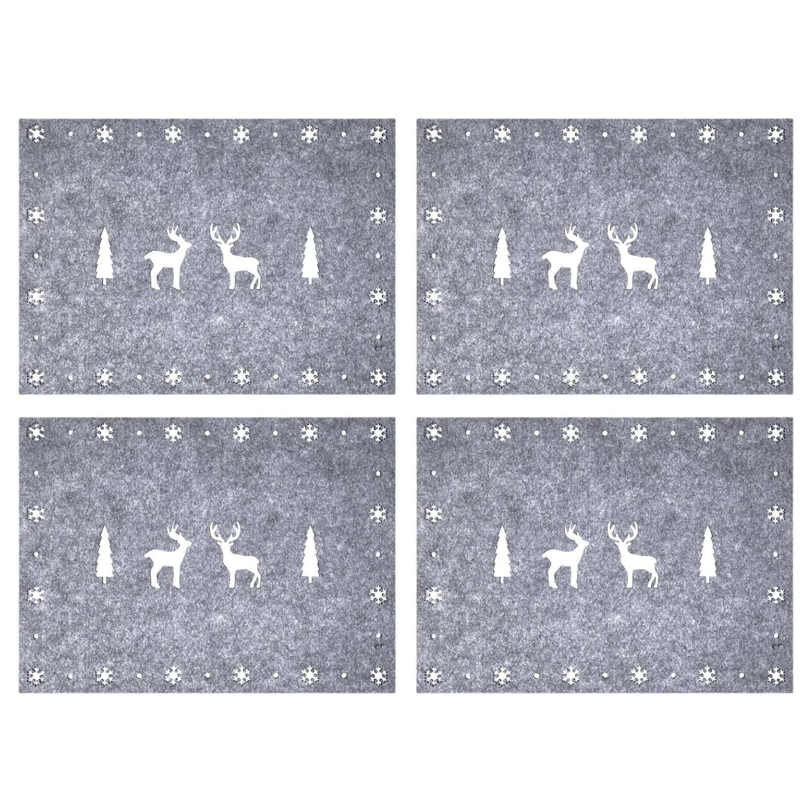 Christmas Dinner Felt Table Placemats & Coasters Set - 8pc - Grey