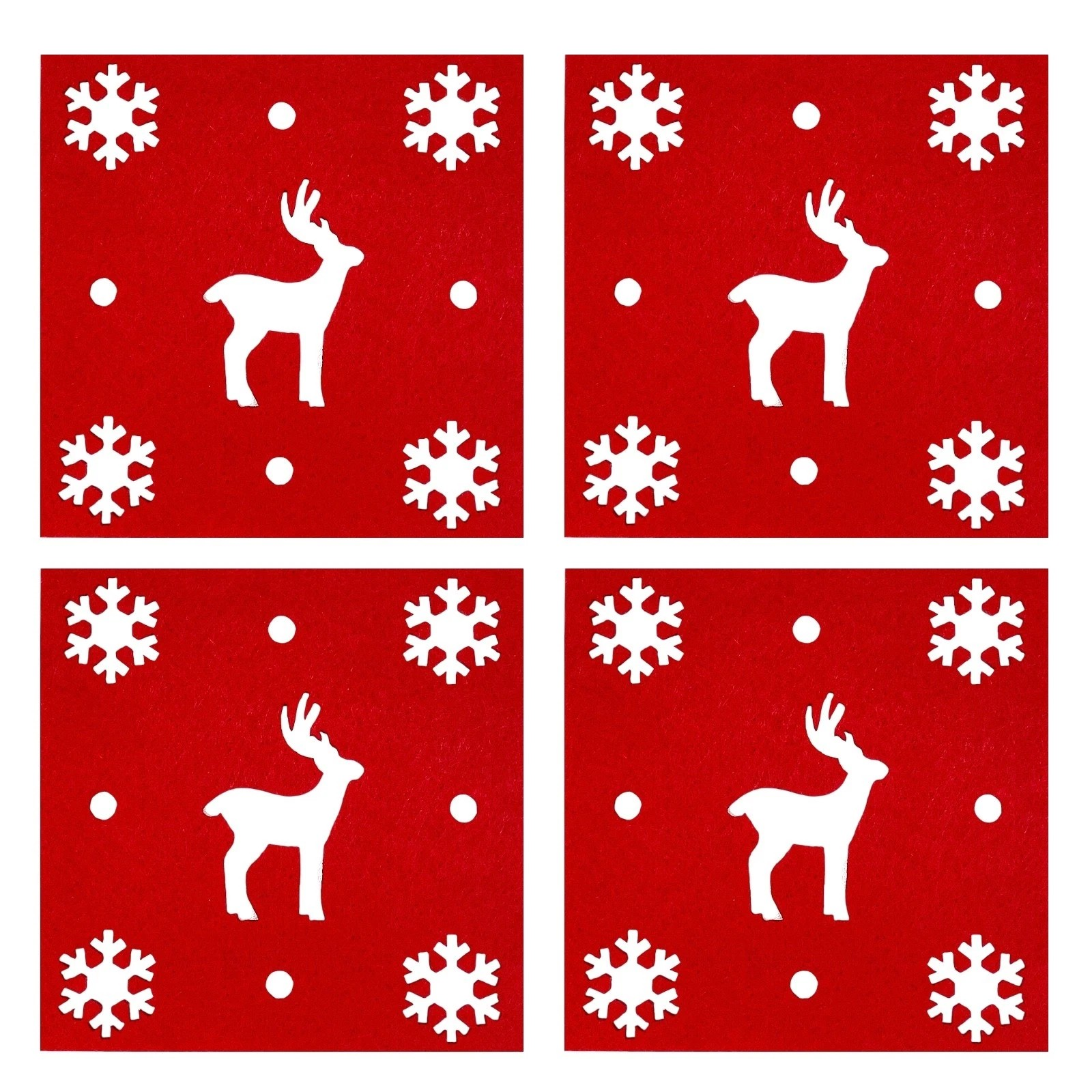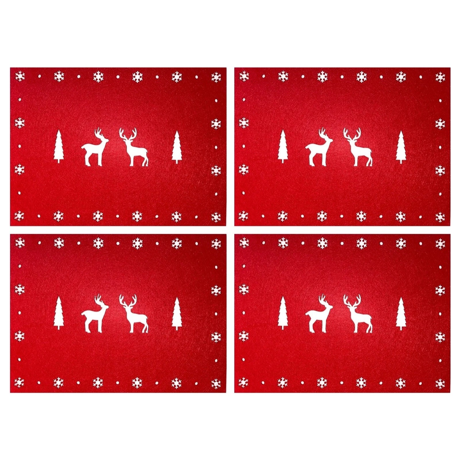 Christmas Dinner Felt Table Placemats & Coasters Set - 8pc - Red