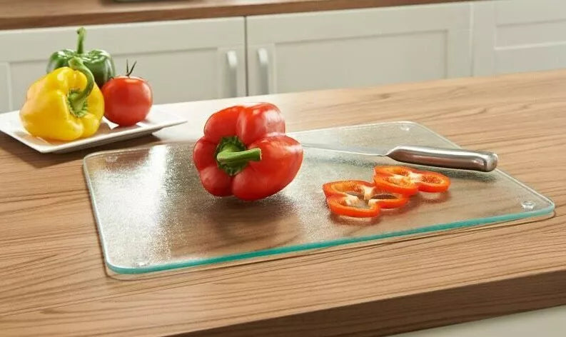 Clear Tempered Glass Chopping Board – a durable and stylish kitchen essential designed to elevate your food preparation. Made from strong tempered glass, it offers a large, easy-to-clean surface that resists stains and odors, helping keep your kitchen fresh and hygienic.
