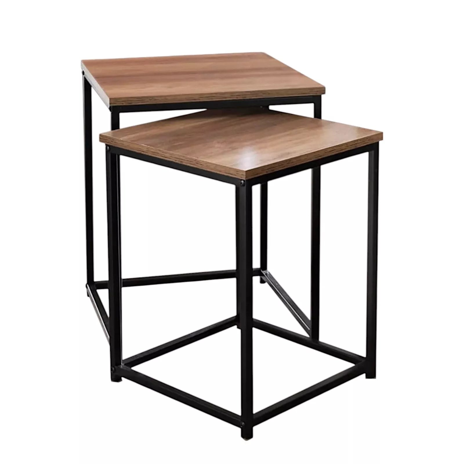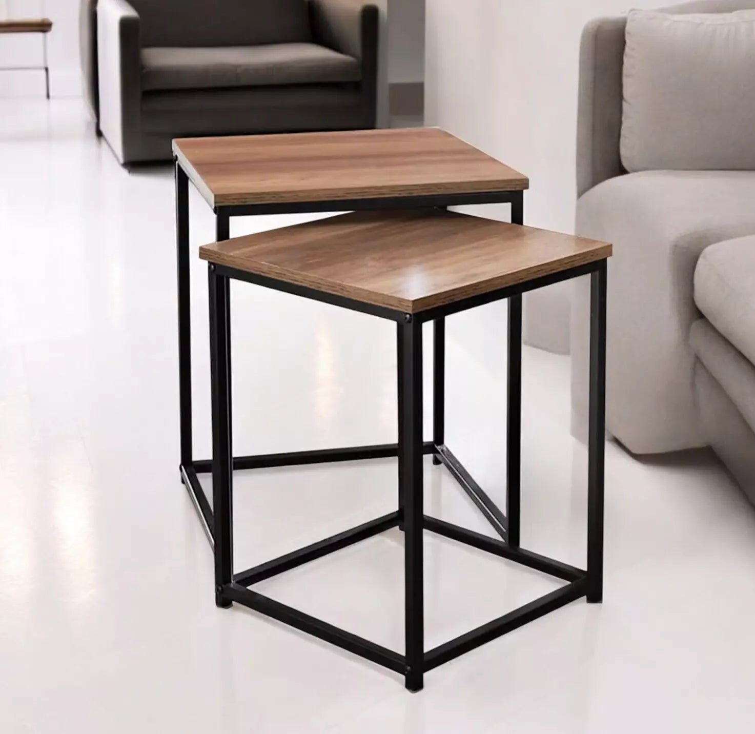 HQ Wooden Top And Metal Frame Table Contemporary Nest Of Two Tables Square