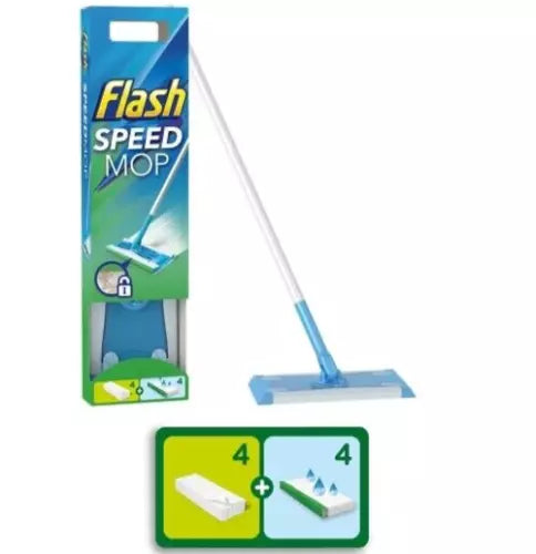 Keep your floors sparkling clean with this Flash Speed Mop Starter Kit, featuring a powerful combination of wet and dry cloths. Ideal for tackling dust, dirt, and spills on all sealed hard floors, this easy-to-use mop system offers fast, effective, and hygienic cleaning. The dry cloths trap dust and hair, while the wet cloths dissolve grime with a fresh lemon scent – all with no need for a bucket.