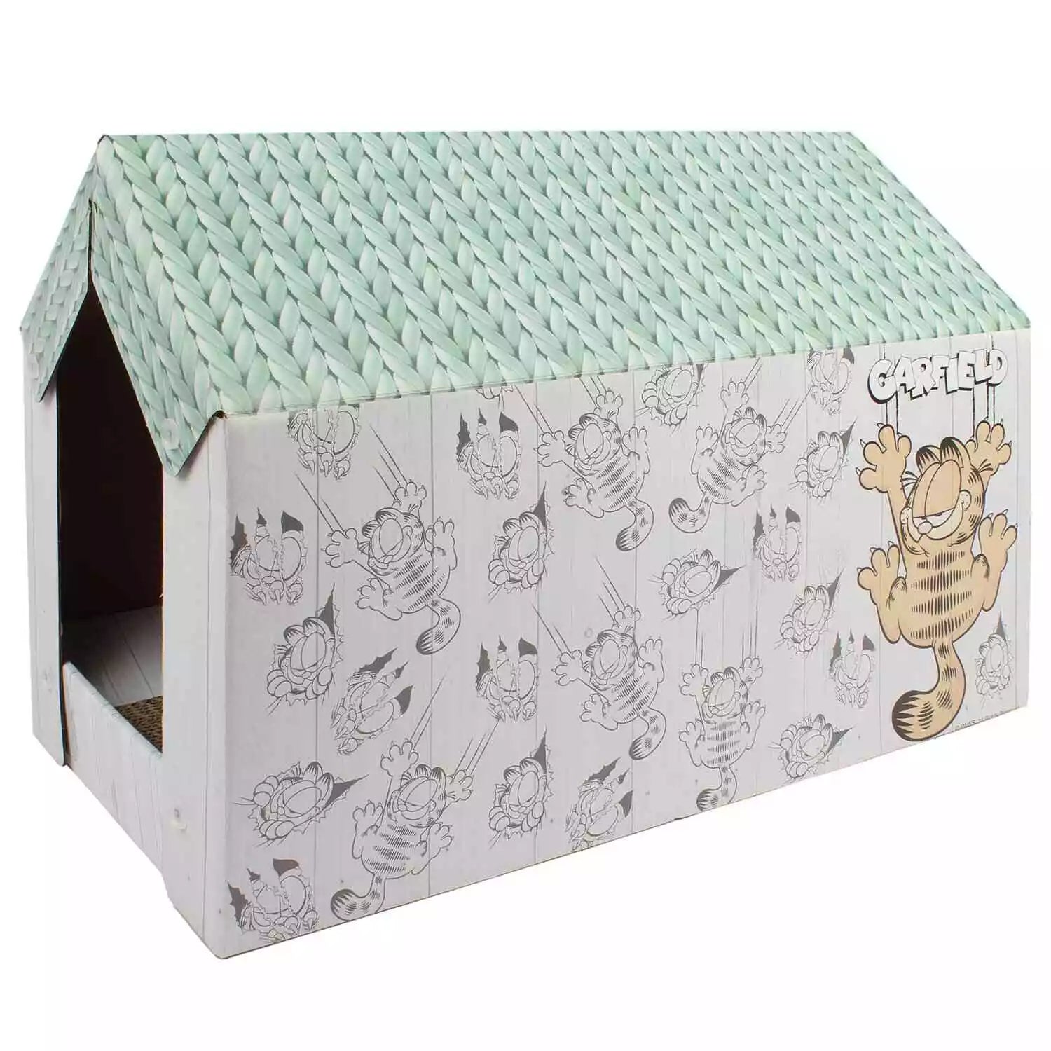 Green/ Teal Garfield Cat Pet Scratching House Cardboard