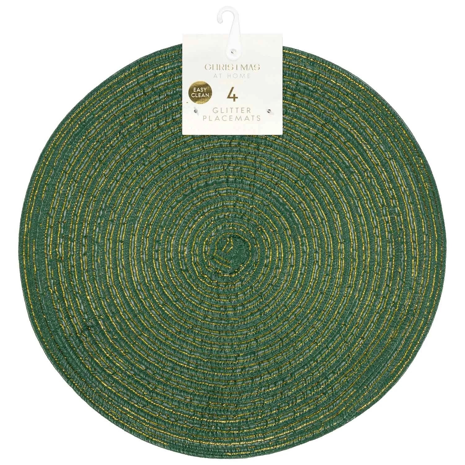 Add a touch of festive sparkle to your dining table with this set of four Christmas at Home Green Glitter Placemats. Perfect for seasonal gatherings, family dinners, or celebrations with friends, these placemats combine practicality with eye-catching design. Each round placemat features a glittery finish that enhances your table setting while protecting your surfaces from spills and scratches. Ideal for creating a cheerful and stylish atmosphere, these placemats are a must-have for festive entertaining.
