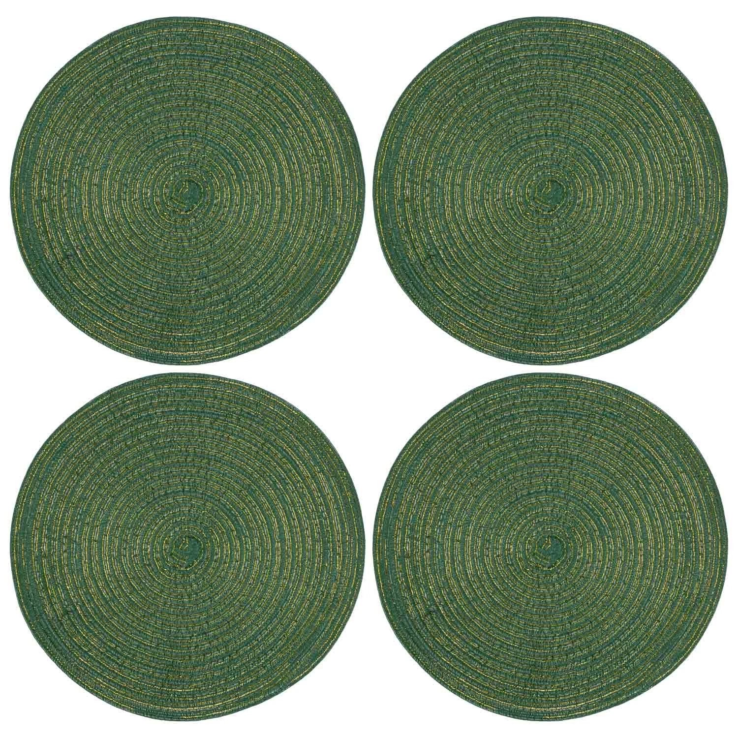 Green Round Glitter Placemats Set Of 4 Table Mats Dining Tableware Essential