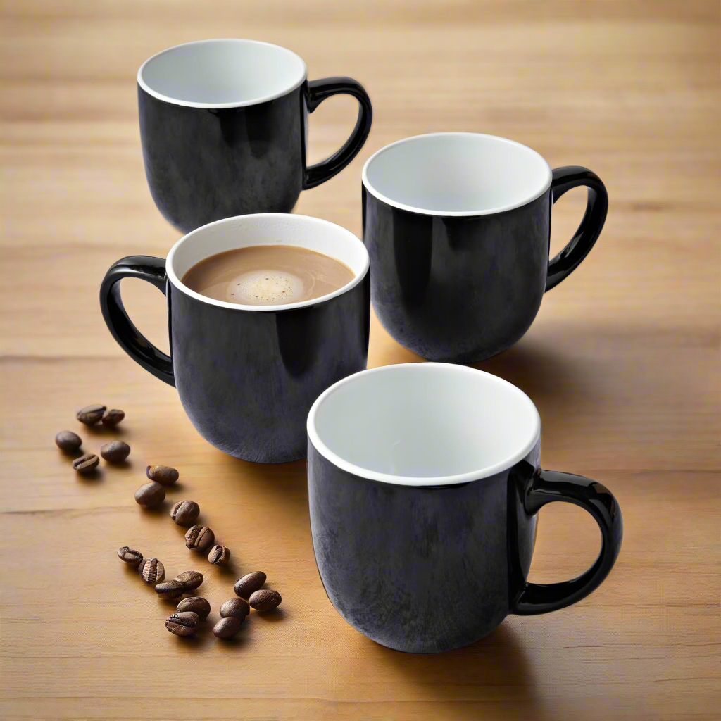 HOMELOX Glossy Black Stoneware Hot Drink Mugs - Set of 4