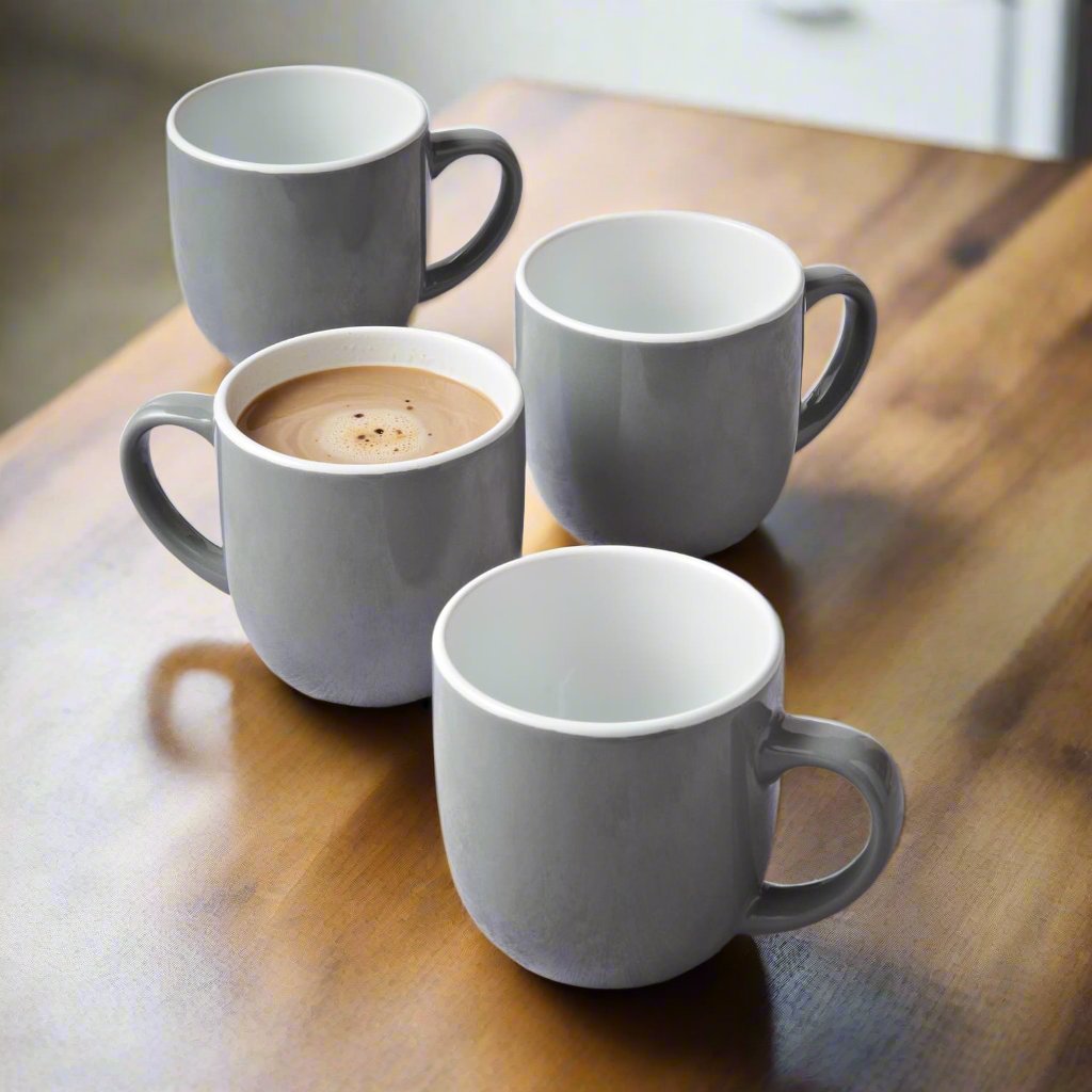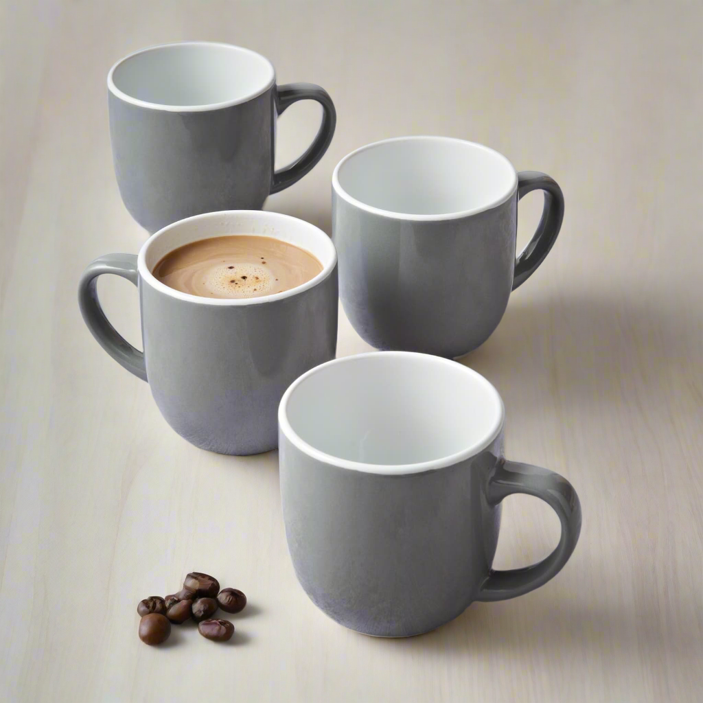 HOMELOX Glossy Grey Stoneware Hot Drink Mugs - Set of 4