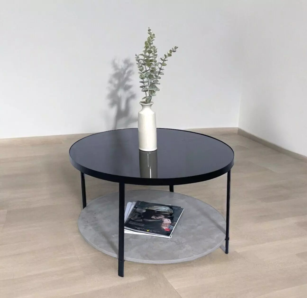 Elevate your living space with this Modern Coffee Table featuring a striking concrete-effect base paired with a sleek black glass top. Designed to bring a contemporary edge to any living room, this premium coffee table combines style with functionality.