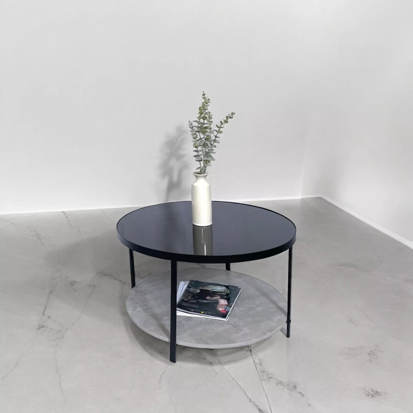 Modern Coffee Table Concrete Effect Base With Black Glass
