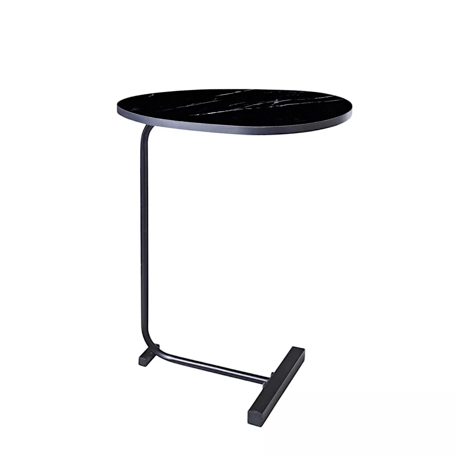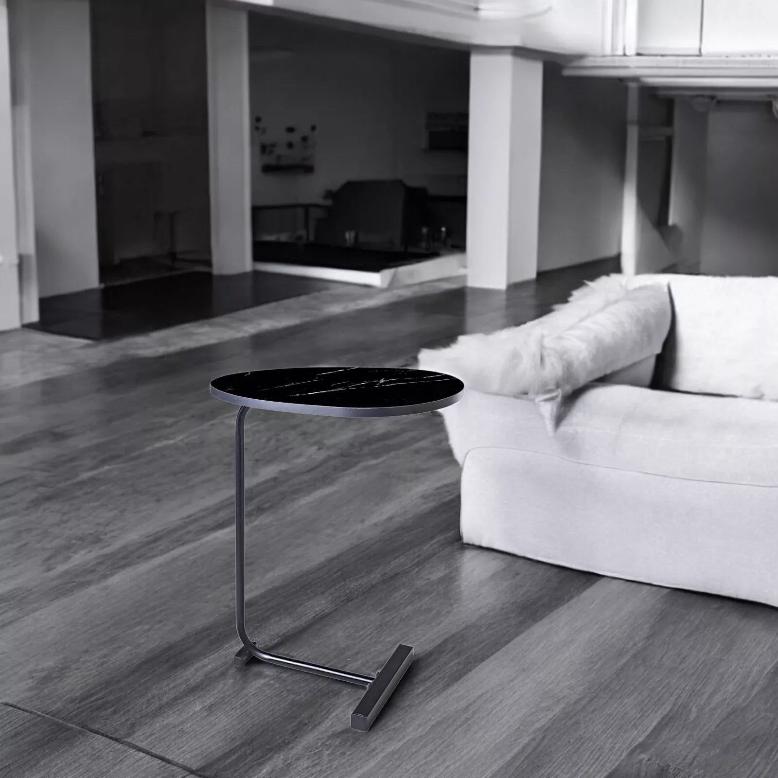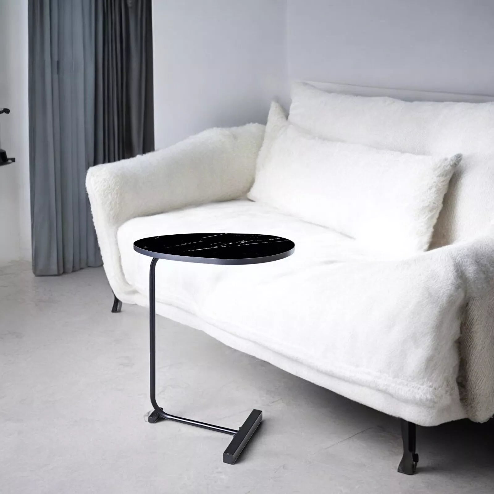 Modern Side Table C Shaped Black Marble Sofa End Table Coffee Snack Table Metal Frame