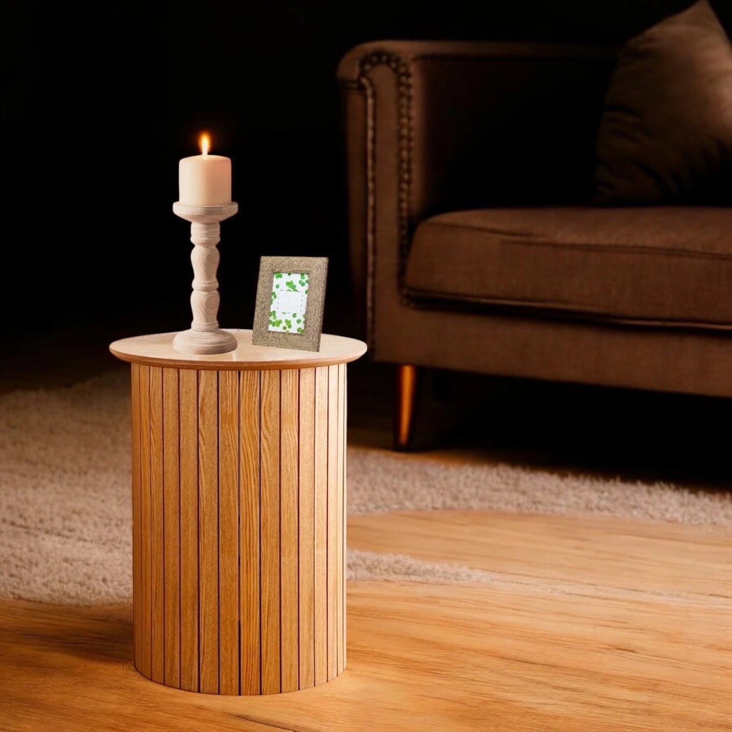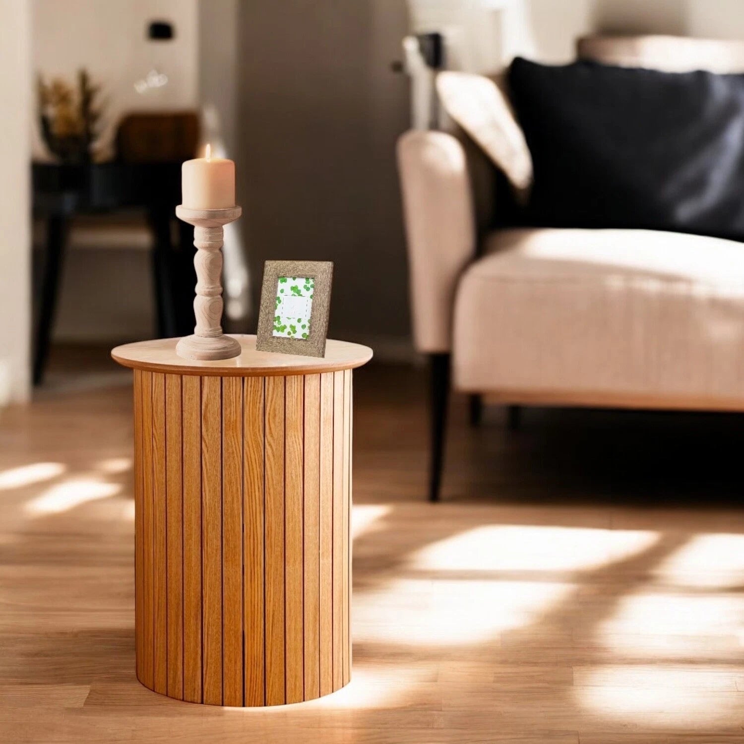 Oak Effect Round Side Table Coffee Table Plant Table Home Furniture