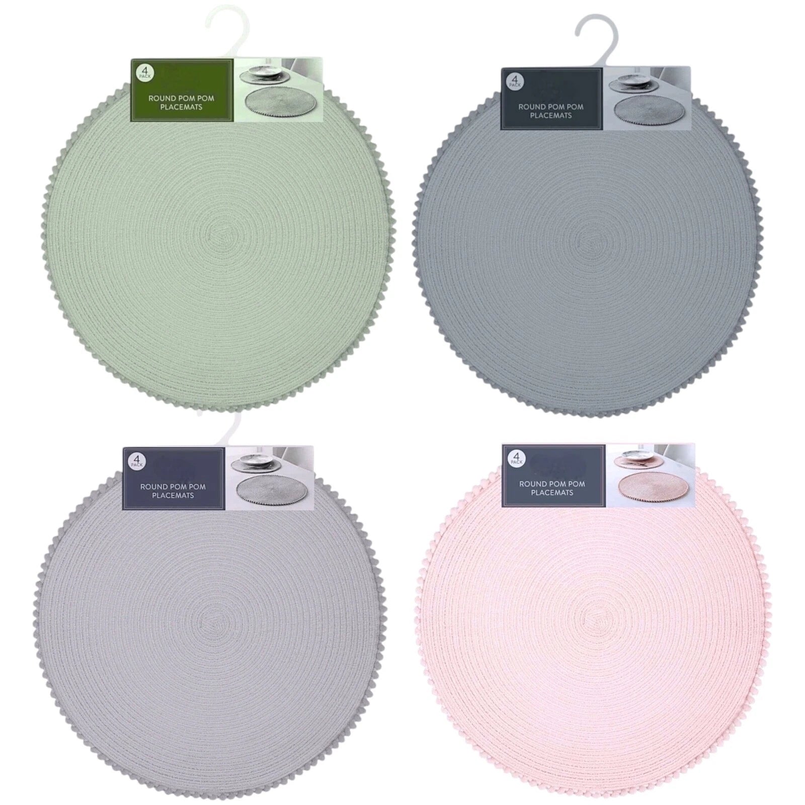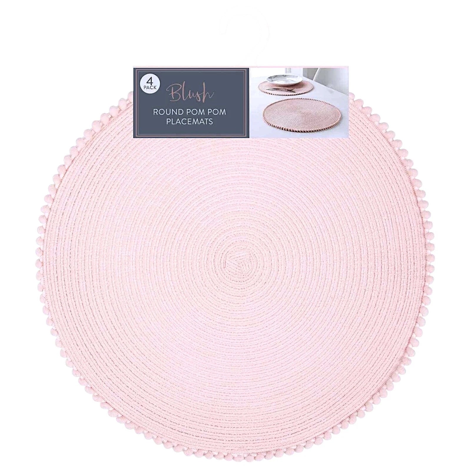 - Type: Round placemats with pom pom trim