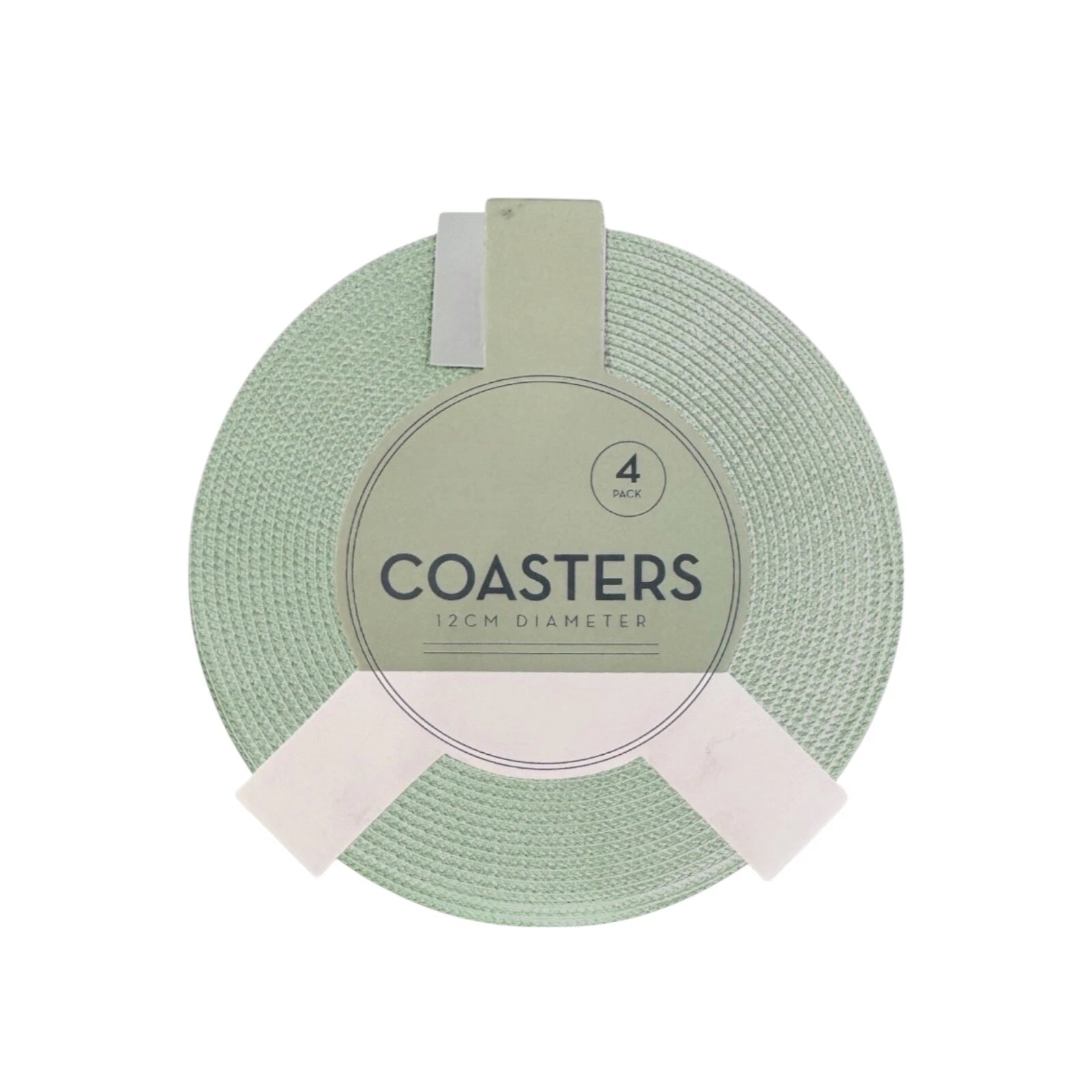 Round Coaster Set Of 4 Woven Table Mats Dining Tableware (Green)