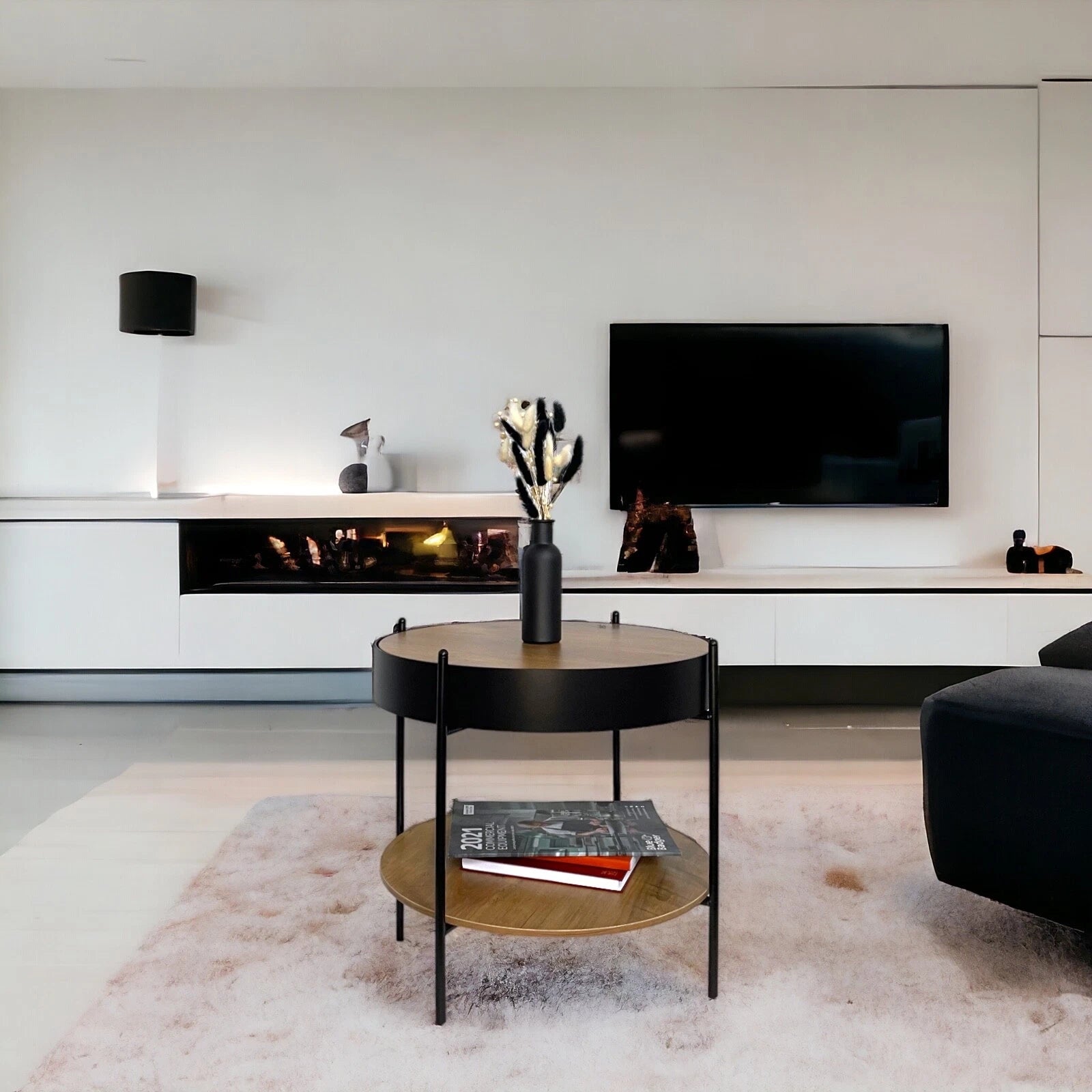 Round Coffee Table Side Table Removable Table Top Storage for Living Room