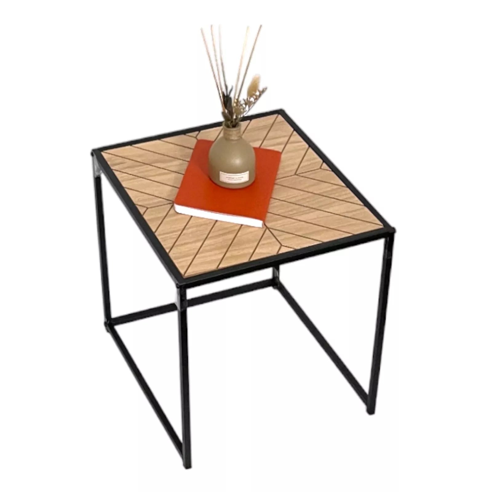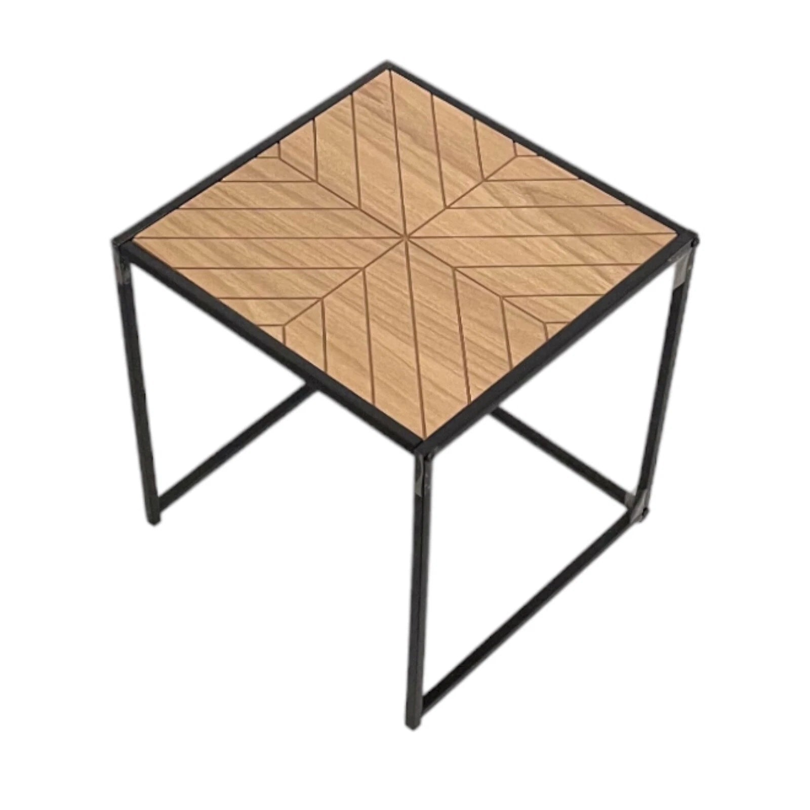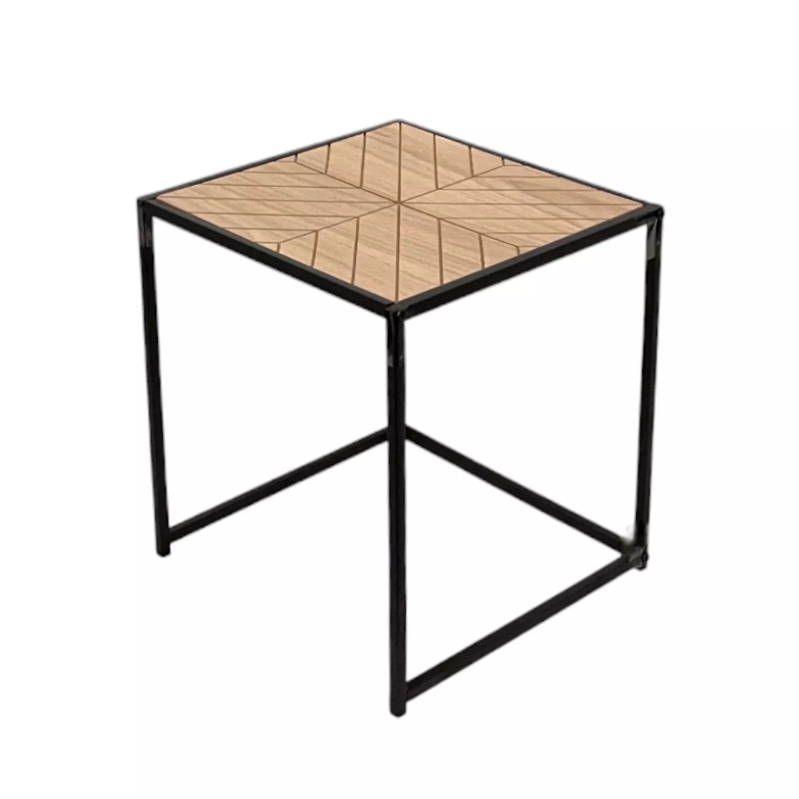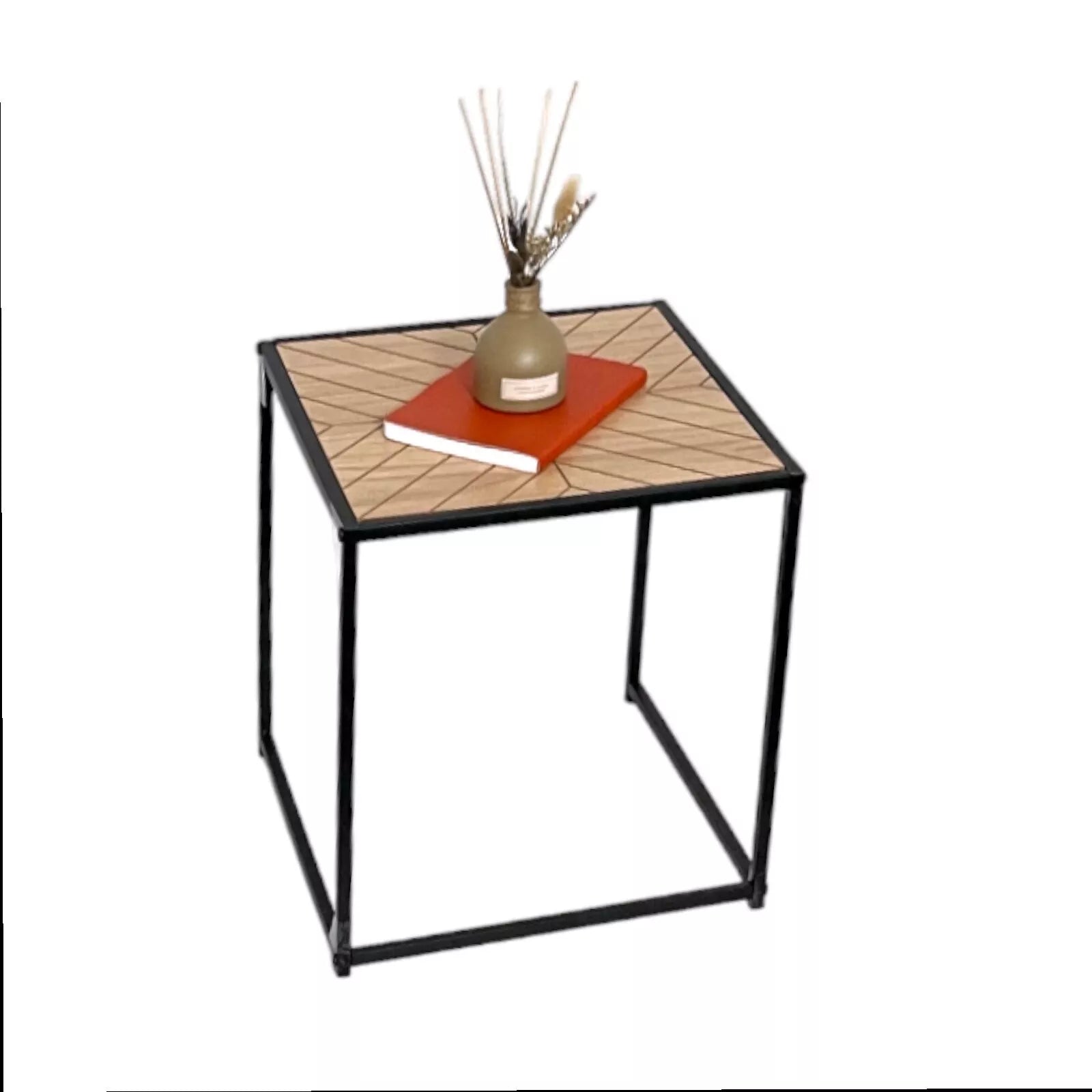 Side Table Wooden Top with Black Metal Legs Living Room Coffee End Plant Table