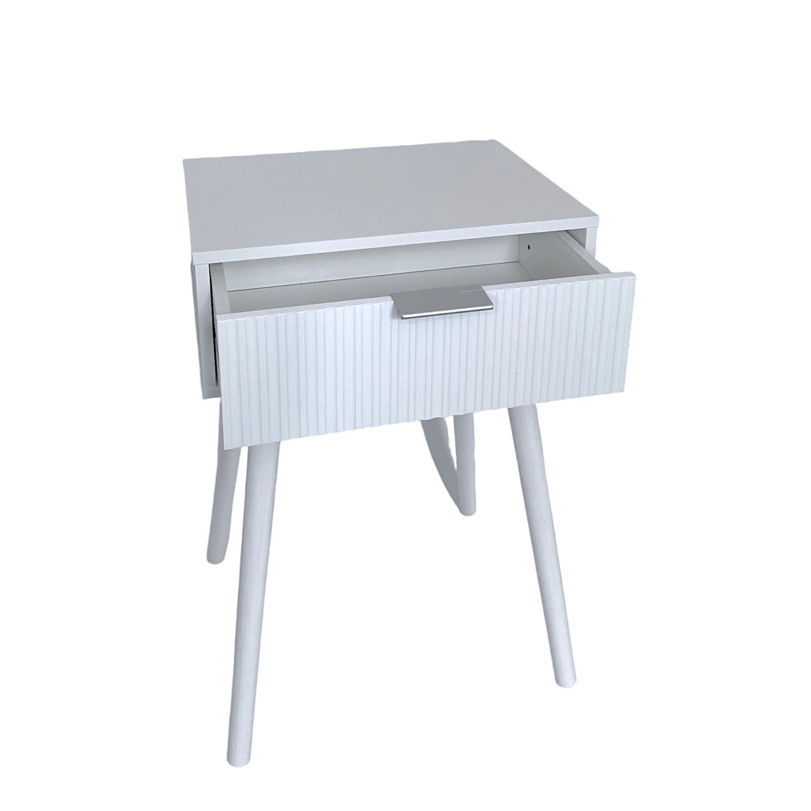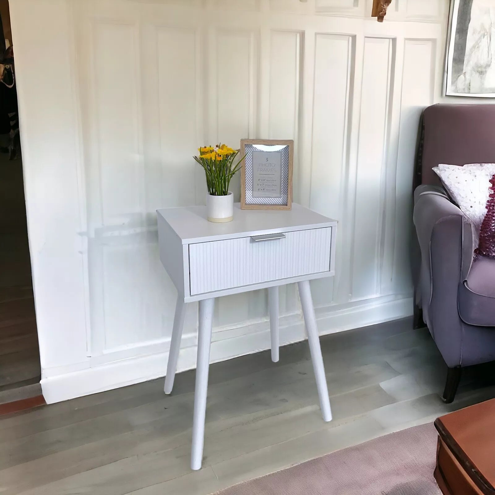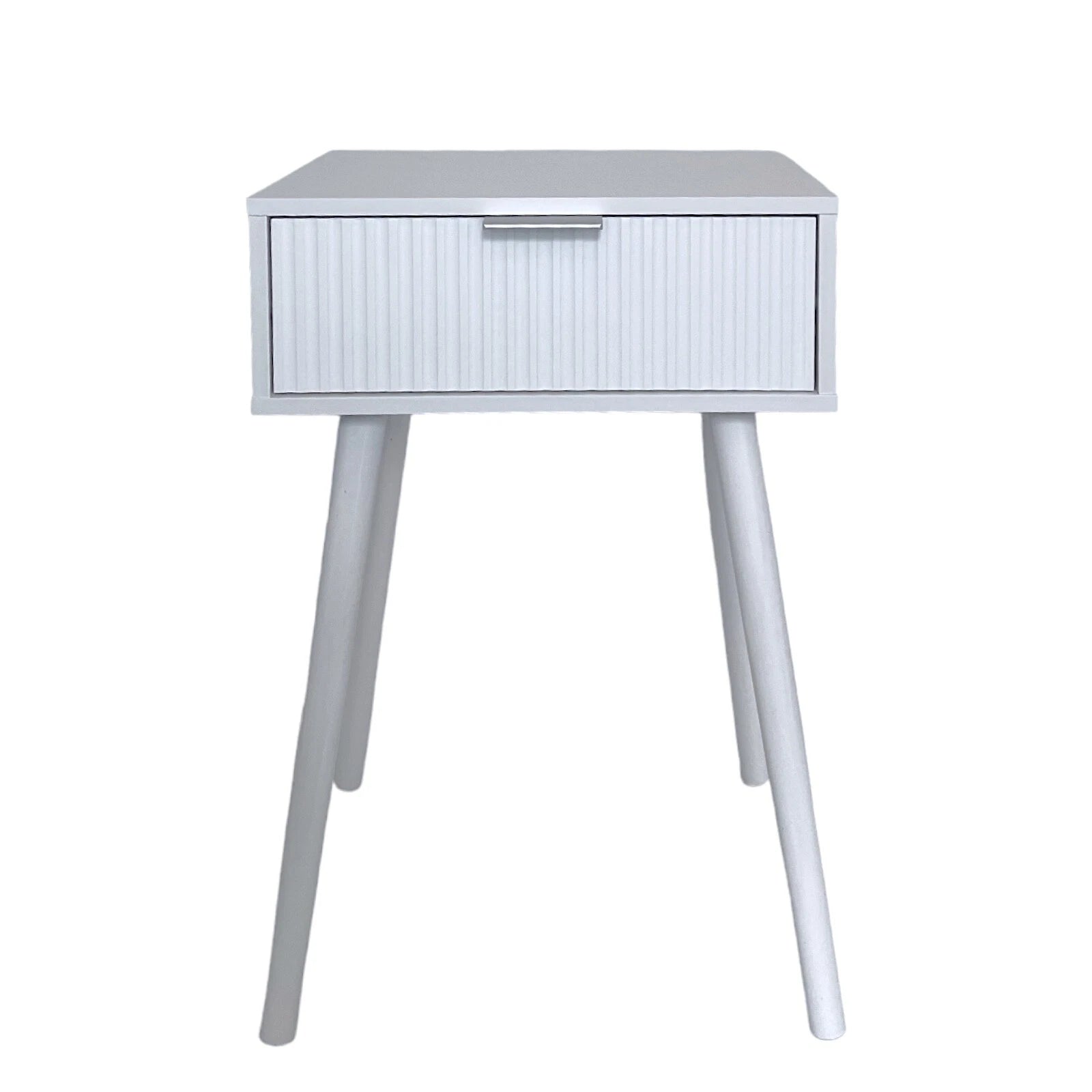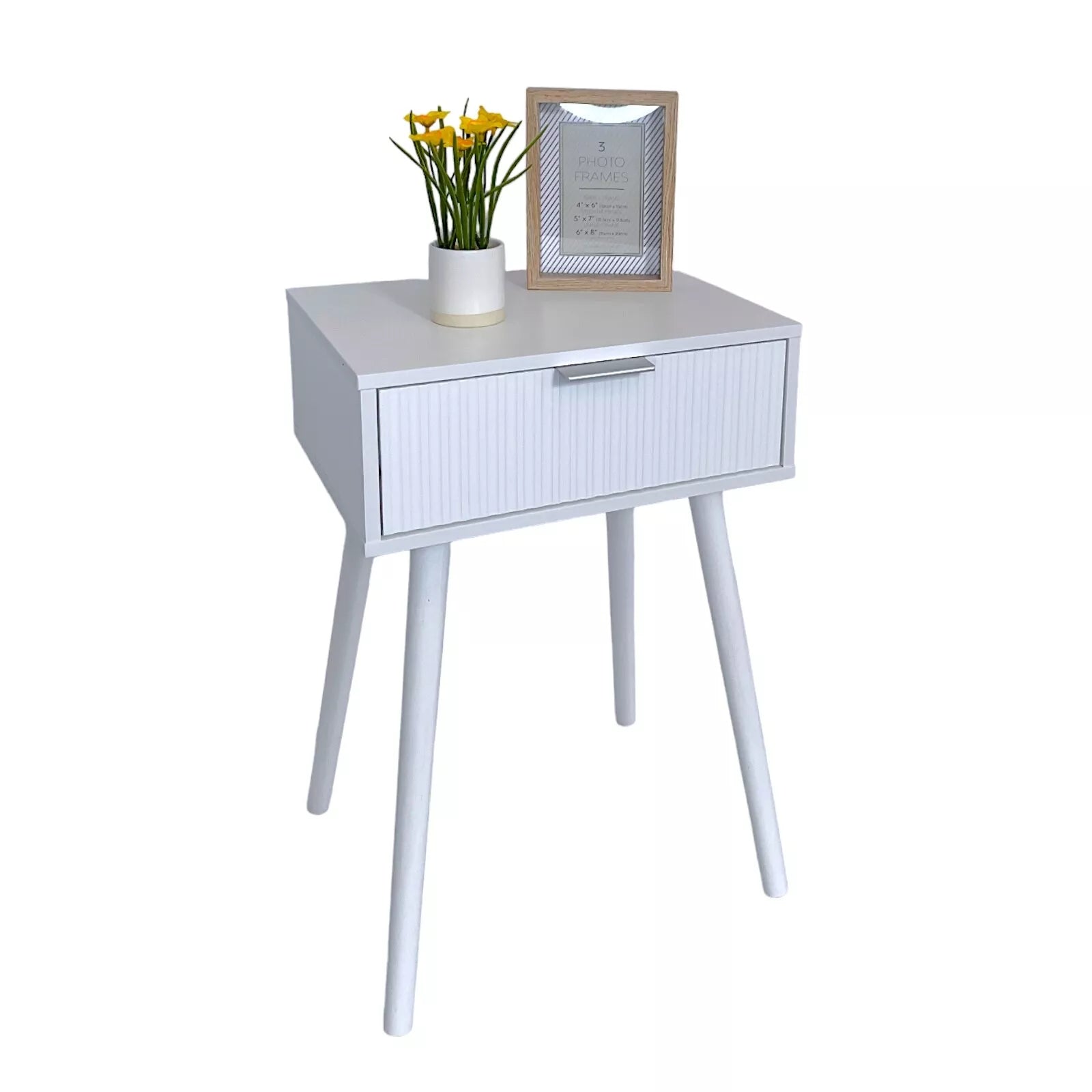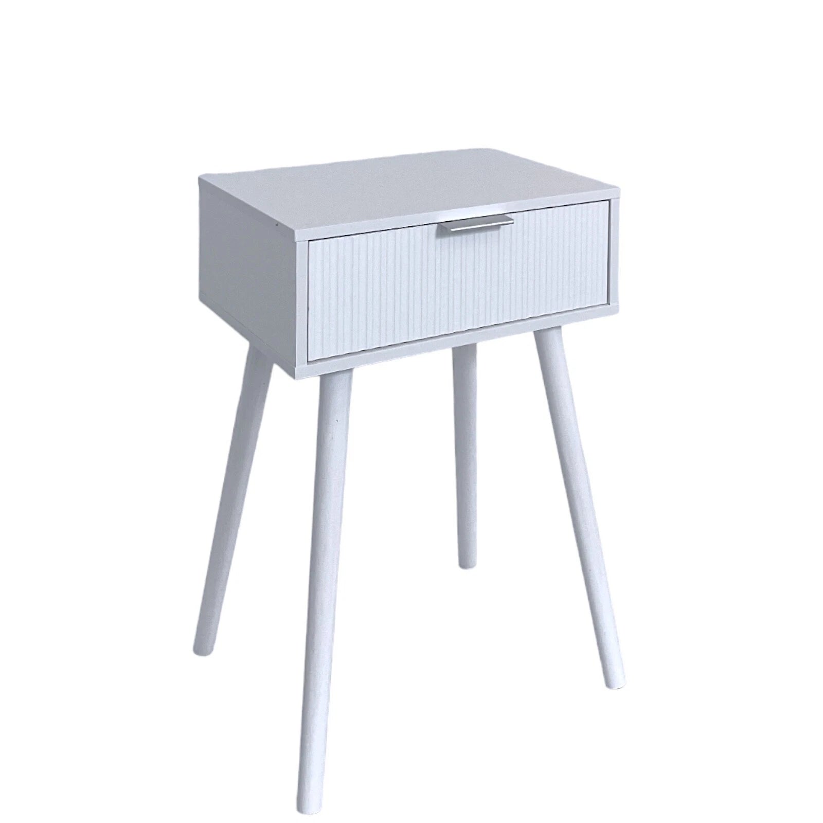 White Bedside Table With 1 Drawer Wooden Legs Side Table Bedroom Furniture