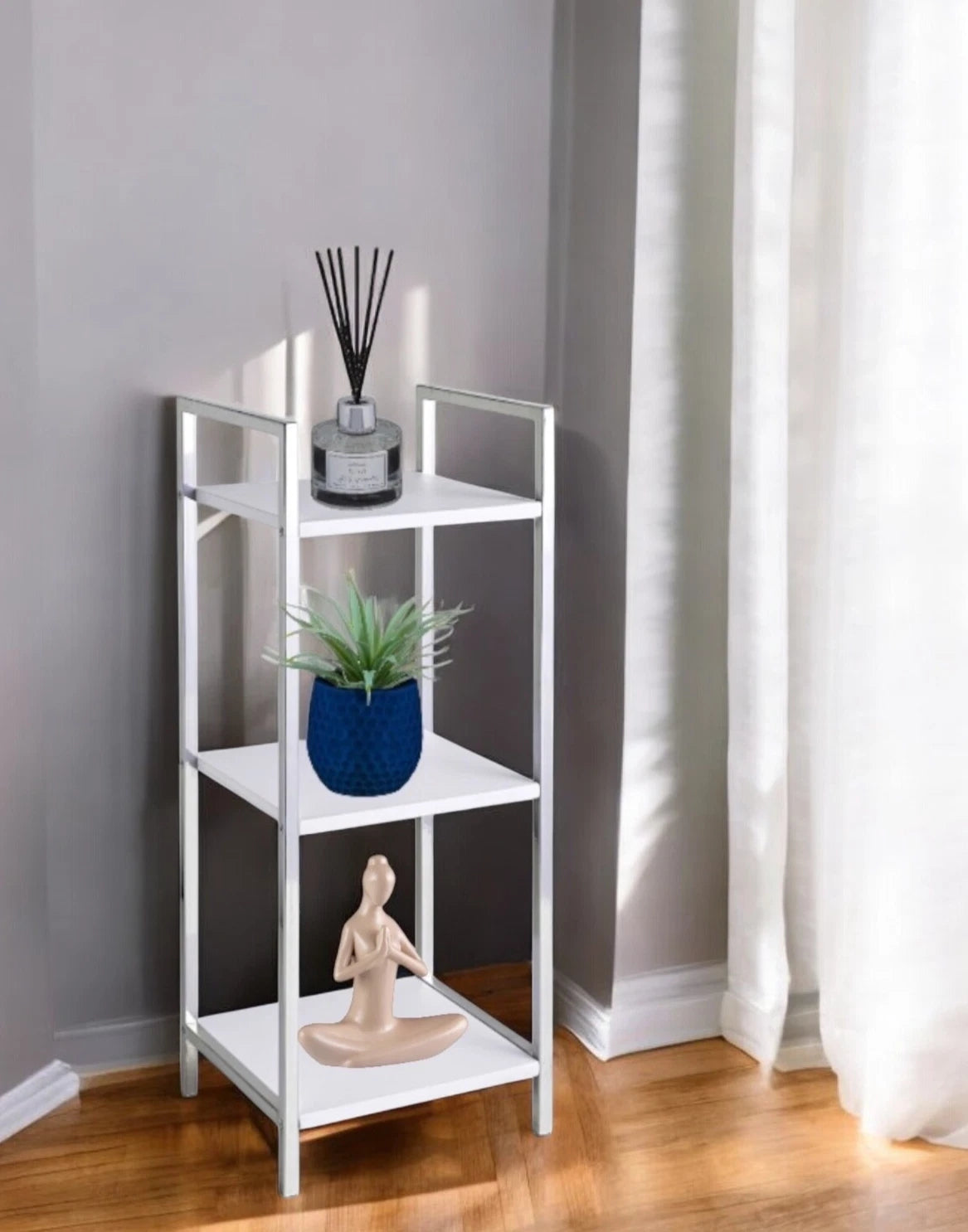 Transform your living space with this sleek and modern 3-tier shelf unit. Featuring a high gloss white finish, this compact shelving solution is perfect for displaying your favourite decorative pieces, plants, books, or everyday essentials.